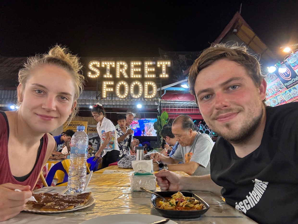 Auf der Partymeile geht es natürlich mega ab. Man wird die ganze Zeit angelabert für kühle Getränke oder „Ping-Pong“ Spiele. Ich hatte erst überlegt, da reinzugehen, ich bin ja immerhin Tischtennis Spieler (:D)… aber Spaß bei Seite. Wir haben uns die Massen angeschaut und die Stimmung aufgesaugt. Ist ja auch irgendwie mal geil als Abwechslung. Am Ende haben wir eine coole Street Food Gasse gefunden, wo wir uns einen Abend-Snack gegönnt haben.