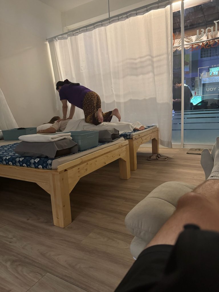 Auf dem Weg zum Hotel suchten wir nach einer Wechselstube aber haben keine gefunden oder es war schon zu spät, also mussten wir für die letzten vier Tage nochmal Geld abheben. Den Abend wollte ich noch nutzen, um endlich mal eine Thai-Massage auszuprobieren und Marco, um in der Zeit nach vier Monaten mal wieder zum Friseur zu gehen. Die Massage ging eine Stunde aber war nicht entspannend, sondern eher wie Physiotherapie. Marco war mit seiner neuen Frisur sehr zufrieden. Die Salons waren nebeneinander und in der Nebenstraße von unserem Hotel.