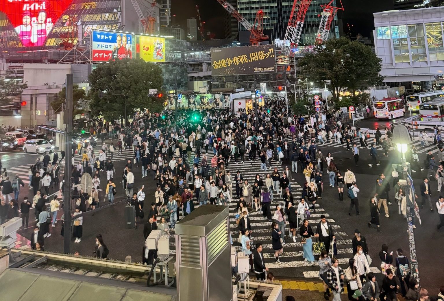 Die Matratzen sind zwar nicht mehr so hart wie in Peking, aber leider immer noch ziemlich hart… Wir wollten erst mal wieder ausschlafen, aber leider ging’s mir immer noch nicht wieder gut. Zumindest ist das Sushi aus dem Supermarkt drinnen geblieben. Wir holten uns Frühstück aus dem Supermarkt gegenüber („Brot“, Frischkäse, Gurken und Pfannkuchen). Danach hab ich mich nochmal ausgeruht. Am Nachmittag haben wir uns dann endlich auf den Weg gemacht. Wir fuhren ein paar Stationen zur Shibuya Station. Hier ist die bekannte Kreuzung, bei der es an allen fünf Zebrastreifen gleichzeitig grün wird. Diese Zebrastreifen an Kreuzungen, die auch quer rüber führen, haben wir noch öfter gesehen, aber da diese Kreuzung in einer Shopping-Gegend liegt, gehen hier super viele Leute gleichzeitig über die Straße. Wir holten uns einen Kaffee und beobachteten aus dem Fenster in der ersten Etage das Treiben. Danach liefen wir noch ein bisschen durch die bunt beleuchteten Shopping-Straßen. Wir fuhren mit der Metro zurück zu unserem Hotel. Marco hatte ein Sushi-Restaurant im Bahnhofsviertel rausgesucht. Wir saßen vorm Tresen und konnten direkt beim „Koch“ bestellen, der vor unserer Nase das Sushi zubereitet hat. Dazu wurde man mit lauten Ausrufen begrüßt und verabschiedet, was wir ziemlich cool fanden.