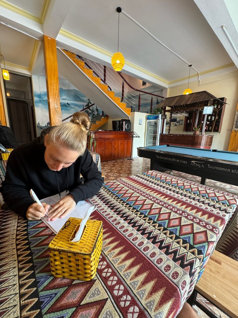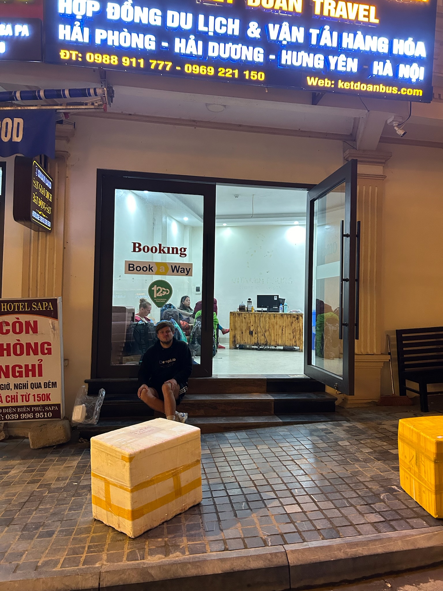Um 16 Uhr waren wir zurück im Homestay und luden nochmal unsere elektronischen Geräte auf. Um 17 Uhr bestellten wir ein Abendessen, was leider ziemlich lange dauerte und mich schon nervös machte. Auf 18 Uhr hatten wir nämlich ein Taxi bestellt und um 18:40 Uhr sollte unser Bus abfahren. Wir hatten uns entschieden, in die Innenstadt zum Buchungsbüro zu fahren. Als um 17:40 Uhr endlich das Essen kam, wollte Marco unsere offene Rechnung (Tickets + Abendessen) mit unserer Kreditkarte bezahlen. Da heute unser letzter Tag in Vietnam war, hatten wir nicht mehr so viel Bargeld übergelassen. Aber die Kartenzahlung (mit dem alt aussehenden Gerät) hat nicht funktioniert…Also musste Marco mit dem Roller unseres Gastgebers nochmal in die Stadt zu einem ATM fahren und Geld abheben?! Zehn Minuten später kam er zum Glück schon wieder, hat schnell seine Nudeln reingeschlungen, sodass wir noch rechtzeitig fertig waren, als das Taxi kam – welches uns übrigens nur den halben Preis zum Vortag gekostet hat. Beim Büro angekommen, stand zumindest 12go auf der Tür und die Frau dort meinte ja ja, wir sollen wir warten, der Bus fährt um 19:30 Uhr. Hä?! Naja wir haben ihr mal vertraut aber schon mal gegoogelt, was es uns kosten würde, wenn wir nicht rechtzeitig am 13.04. das Land verlassen :D. Eine Überziehung von 1-3 Tagen würde uns nur 25$ kosten – das geht ja (man kommt nicht direkt in den Knast oder so). Also warteten wir dort noch 1,5 Stunden auf den Sleeperbus, der mit einer Verspätung erst um 20 Uhr losfuhr. Wir waren die Vorletzten Gäste, die einstigen, haben dafür noch gute Plätze bekommen, denn der Bus war mal wieder bis auf den letzten Platz voll. Wir haben die meiste Zeit der Fahrt geschlafen und um 22 Uhr nochmal eine längere Pause an einem Straßenlokal gemacht, wo noch einige Fahrgäste Abendessen aßen. Um 5 Uhr sind wir dann an einem großen Busterminal in Dien Bien angekommen, wo wir aussteigen mussten.