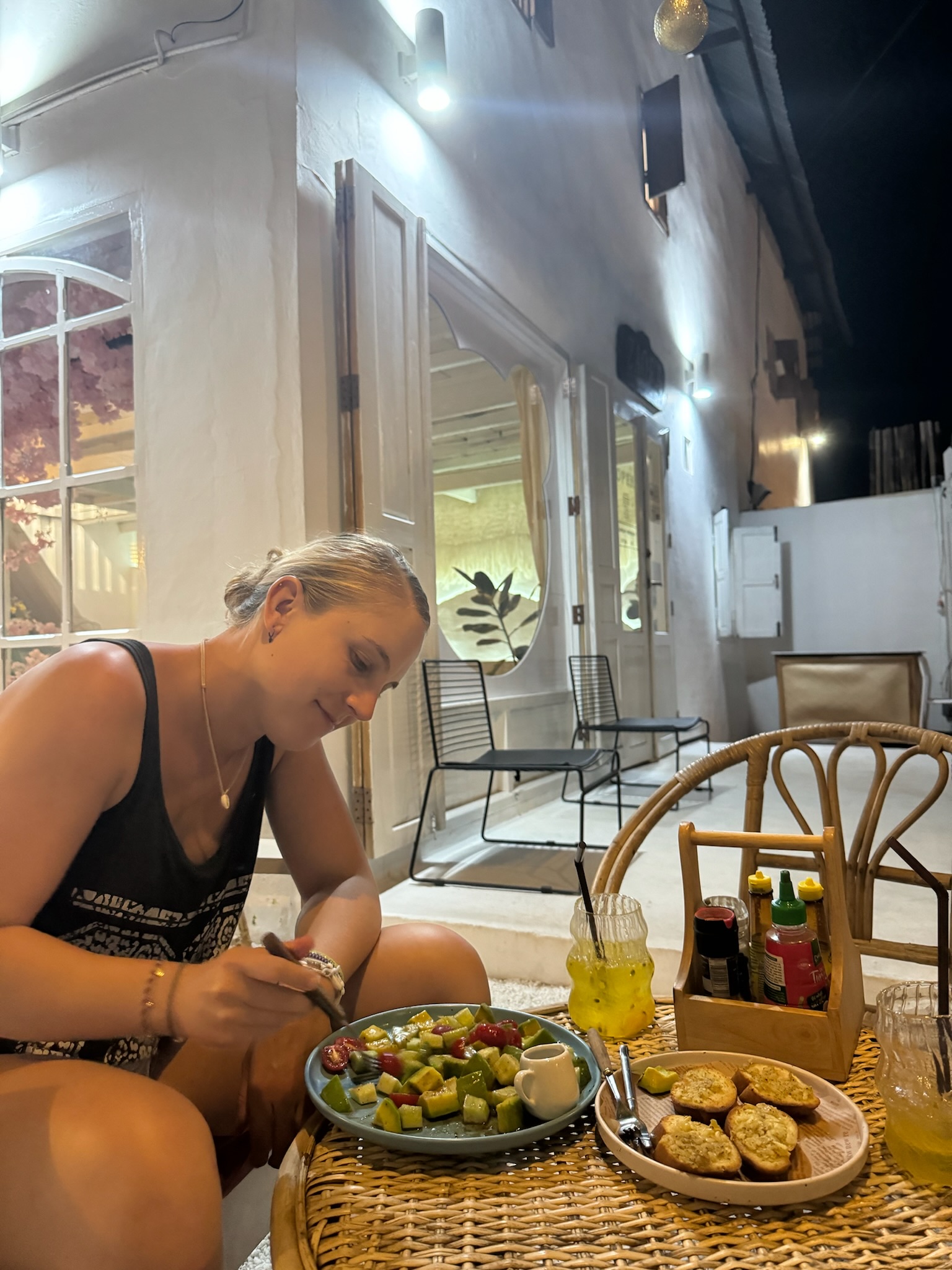 Dann machten wir uns auf den Rückweg und waren gegen 16 Uhr zurück in der Stadt. Wir versuchten am Schalter in einer Bank mal etwas mehr Bargeld abzuheben (damit man die Gebühren nur einmal bezahlt), was theoretisch mit Vorlage des Reisepasses möglich ist, aber Marcos Kreditkarte vom Limit her wohl nicht mitgemacht hat. Also hebten wir wieder wie gewohnt Geld ab. Wir liefen danach noch über den Nightmarket und den Foodcourt aber wollten lieber in dem Café bei uns um die Ecke zum Abendessen. Am Abend hatte Marco wieder zwei Meetings.