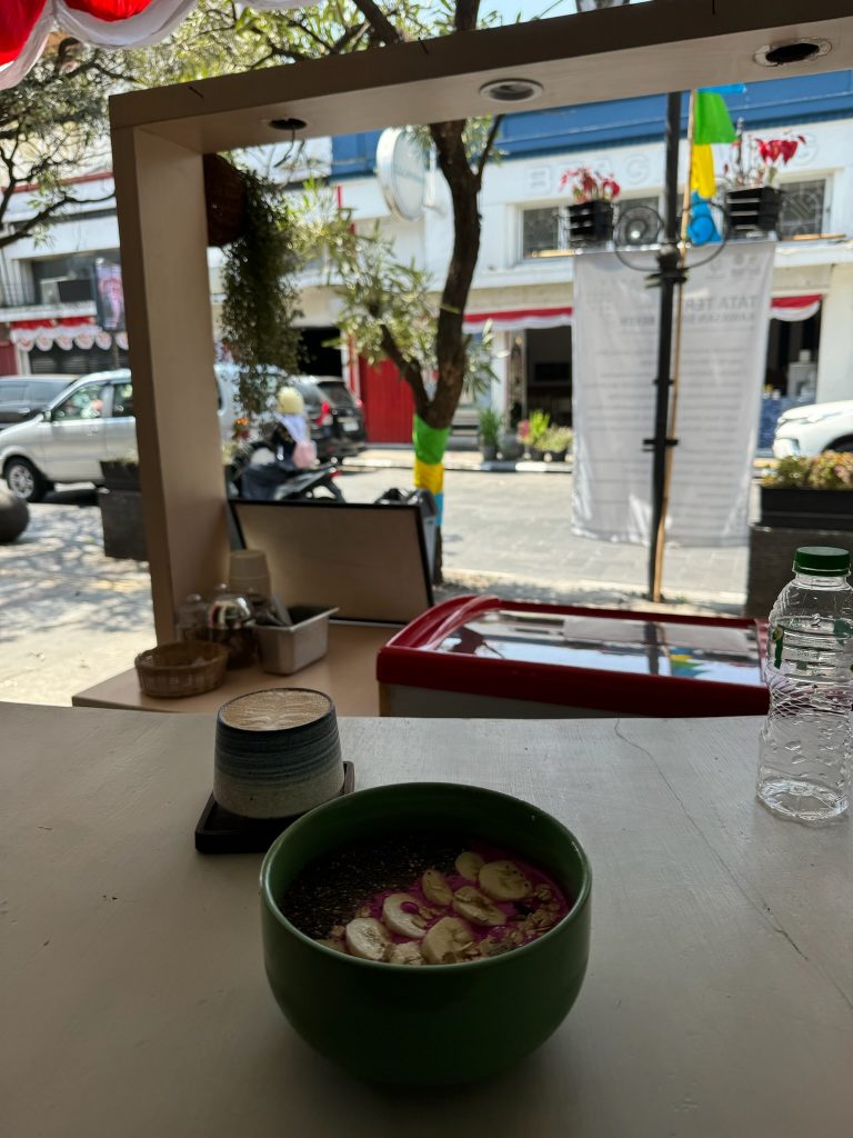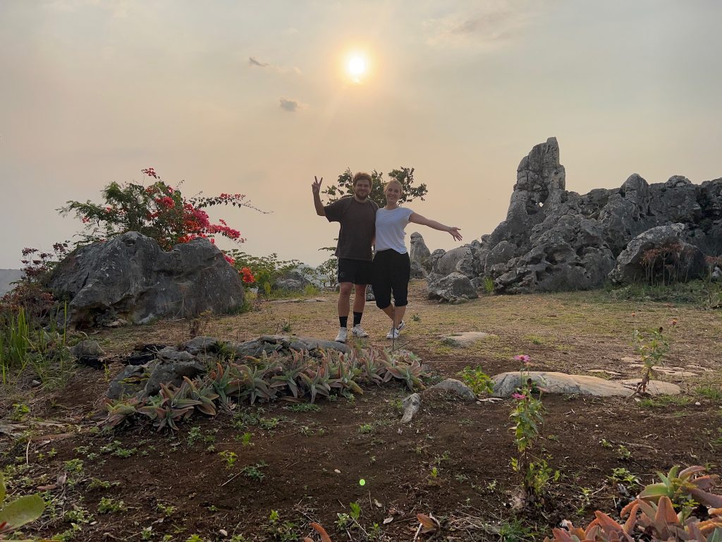 Heute sind wir mal wieder nicht aus dem Bett gekommen, wir haben immer noch Probleme einzuschlafen…Diesmal fuhren wir mit dem Roller zur ca. 10 Minuten entfernten Braga Straße, um dort eine Smoothie Bowl zu frühstücken. Währenddessen buchten wir übers Internet eine Tagestour zu einem anderen Vulkan für Freitag. Danach holten wir uns in einem anderen Café noch einen Bagel zum mitnehmen. Nach einem Zwischenstopp im Hotel fuhren wir am frühen Nachmittag los nach Westen ca. 1,5 Stunden und 28 km an den Stadtrand zum „Stone Garden“. Fast die komplette Strecke führte durch die 2,5 Mio Einwohner-Stadt und Marco hat uns souverän, wie ein Einheimischer durch die vollen Straßen mit heftigem Verkehr gefahren. Gut, dass wir mittlerweile schon viel Erfahrung gesammelt haben, aber es war ziemlich anstrengend. Da es fast keine Ampeln gibt, stehen an den Kreuzungen Männer, die den Verkehr regeln. Wir dachten, dass sie bezahlt werden, weil es bei dem Verkehr ohne sie teilweise unmöglich erscheint, aber später erfuhren wir, dass sie es nur für Trinkgeld machen.