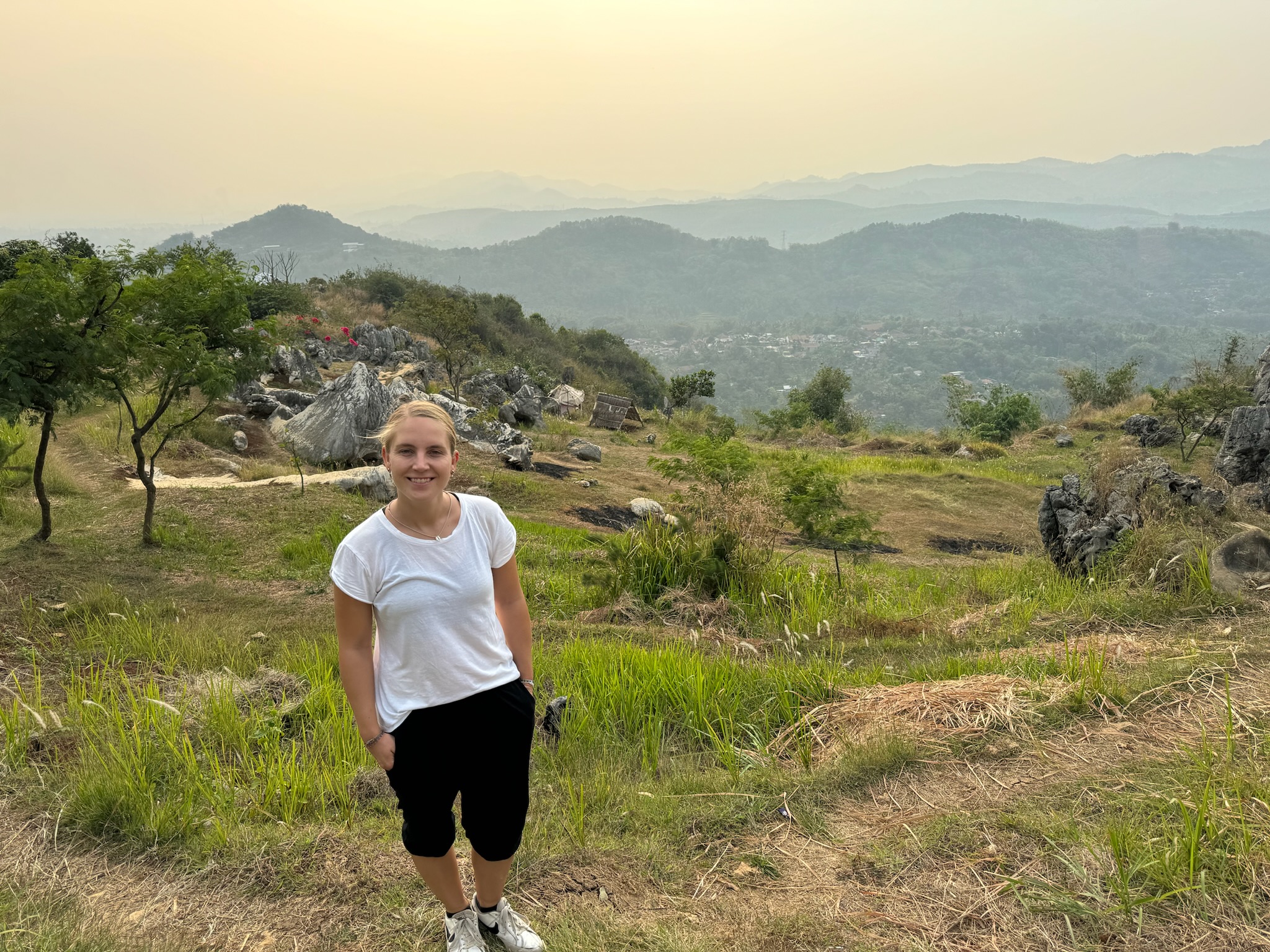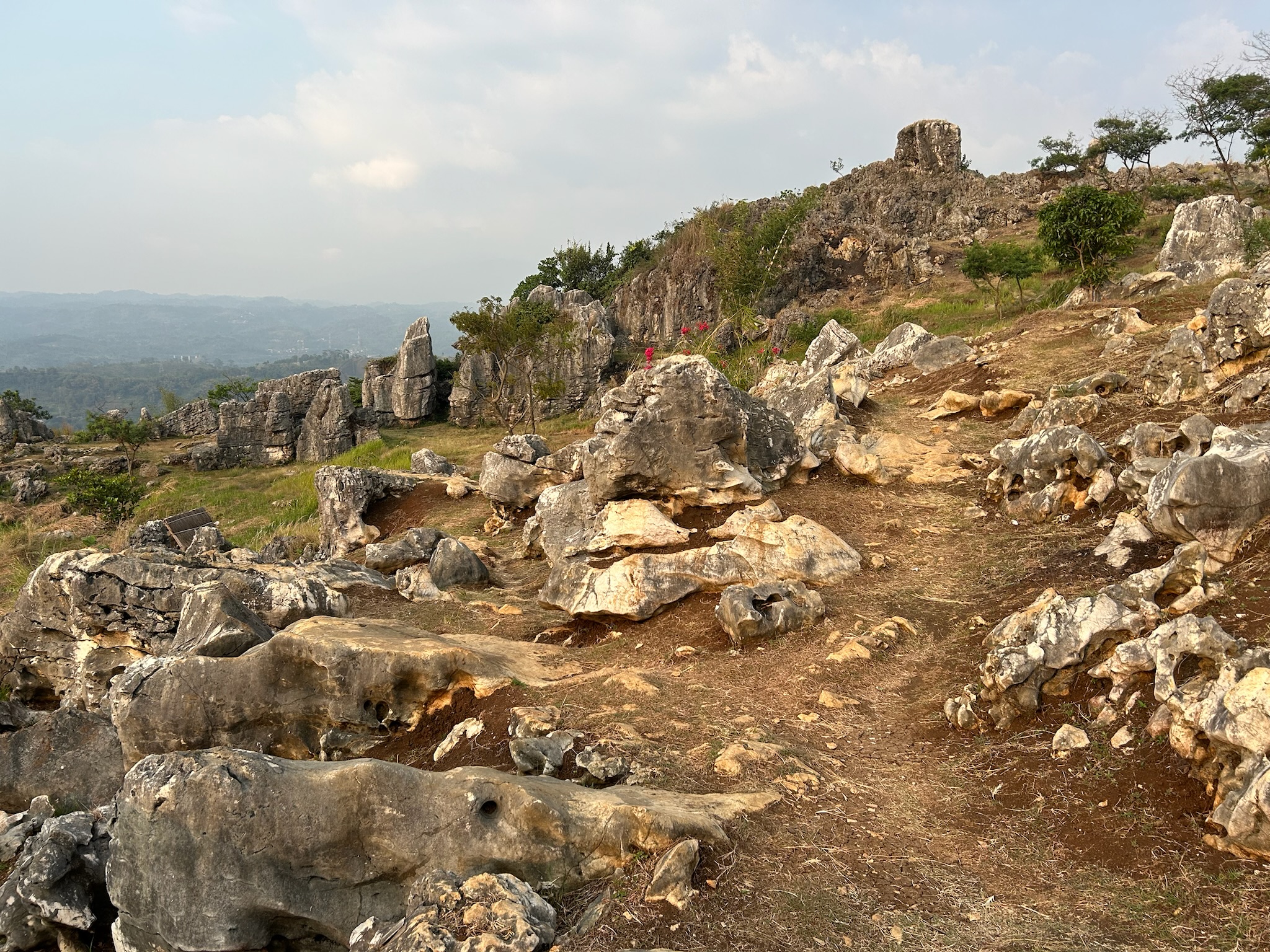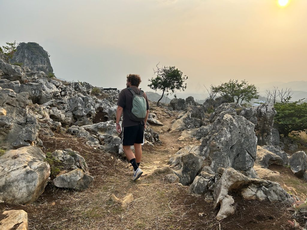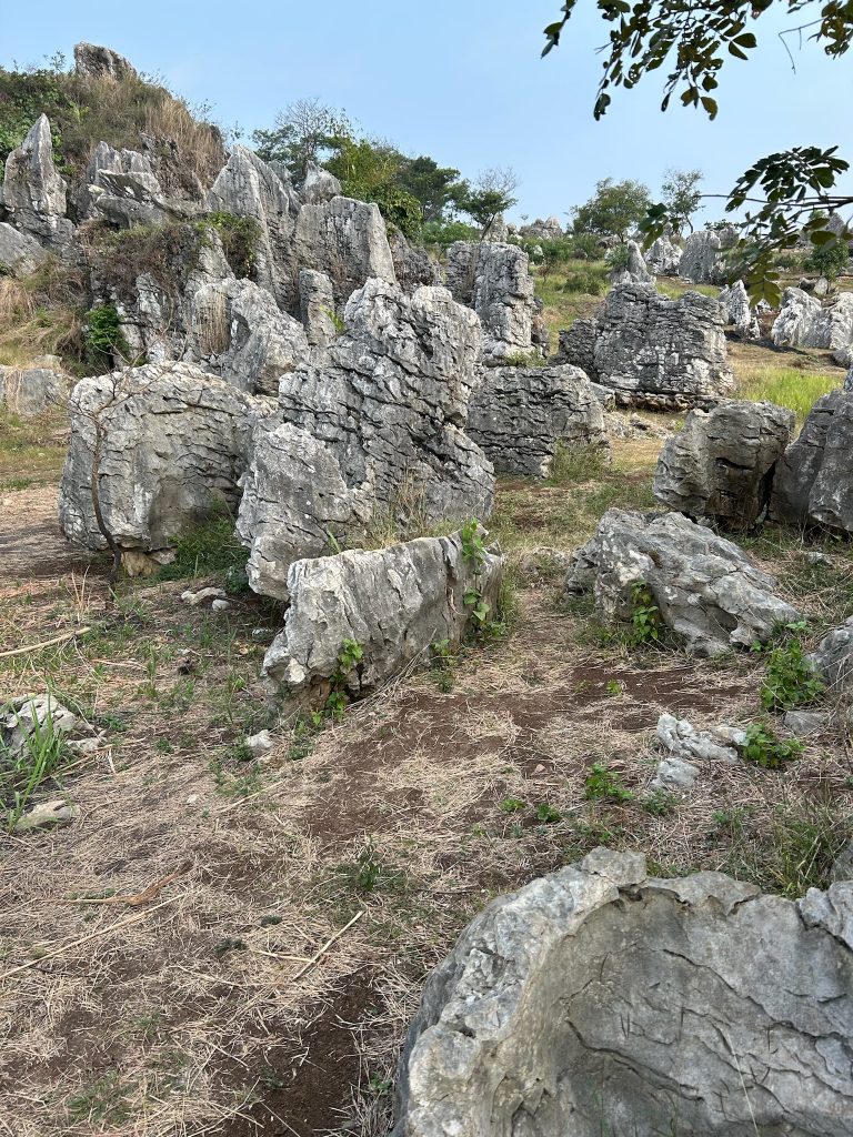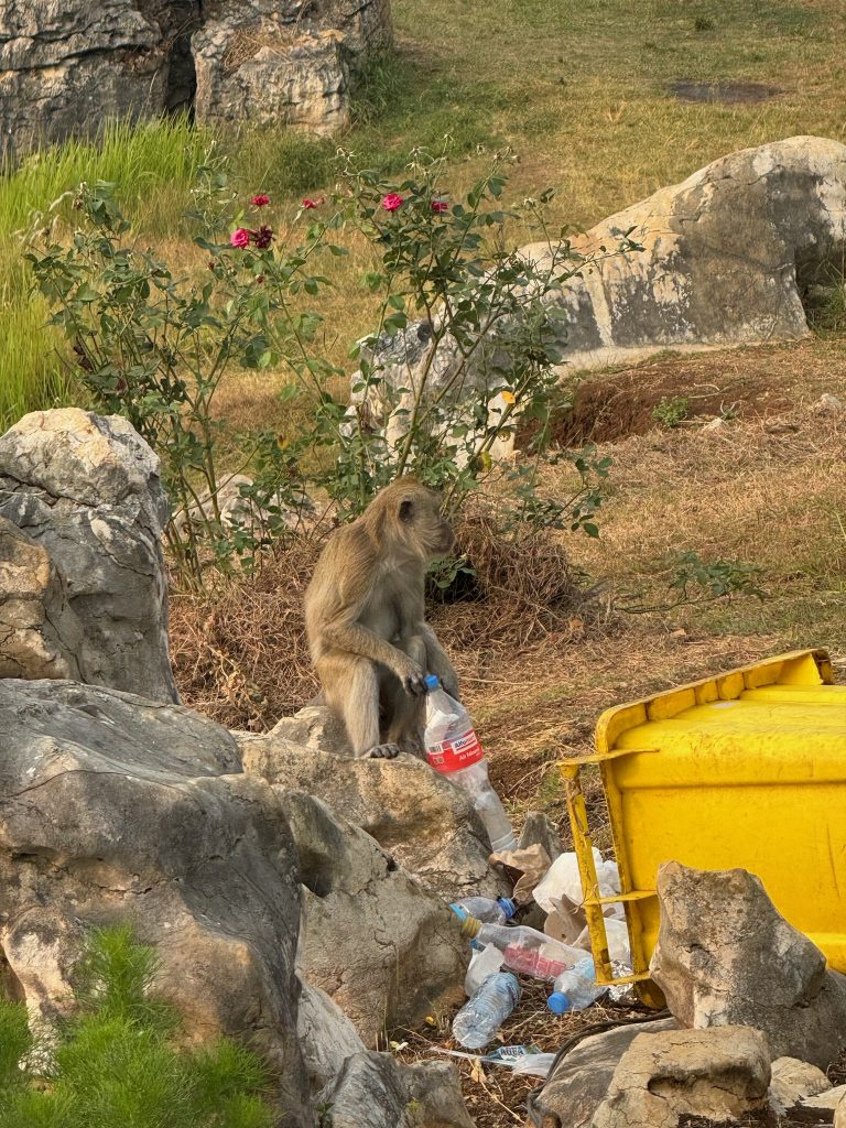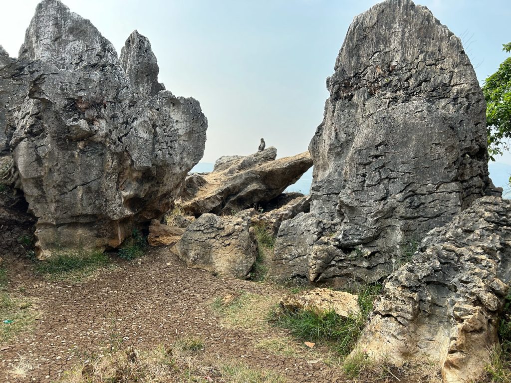 Beim Stone Garden mussten wir Eintritt bezahlen (1,80€) und liefen den Berg hoch, wo am Hang viele bizarre Steine und Felsen aus dem Hang herausragten, was ziemlich cool aussah. Dazu hatte man noch einen Ausblick ins Tal und die dahinter liegenden Berge. Wir setzten uns zuerst unter einen Pavillon, um die Bagels zu snacken. Auf einmal kam ein Makaken-Affe ziemlich nah an uns heran und geierte auf unser Essen, da haben wir lieber schnell alles zusammengepackt und sind losgelaufen. Während wir durch den Steingarten liefen, wurden wir erst noch von dem Äffchen verfolgt. Später hatten wir Ruhe, aber haben noch einen zweiten gesehen, die beide im Müll nach etwas Essbarem gesucht haben.