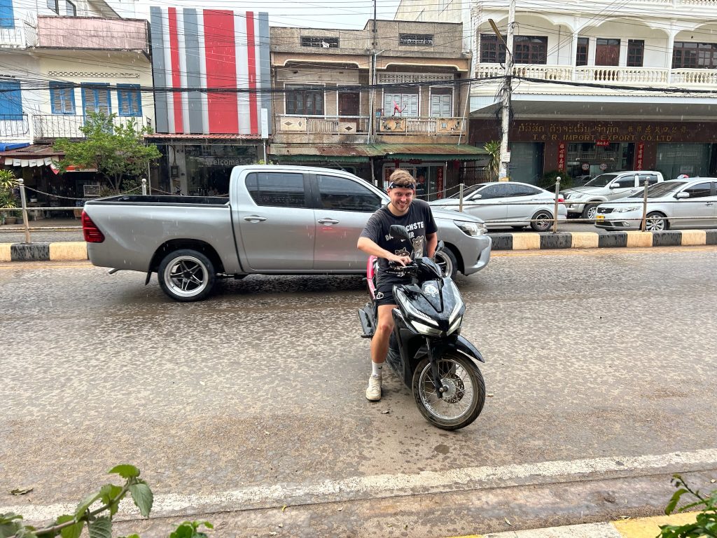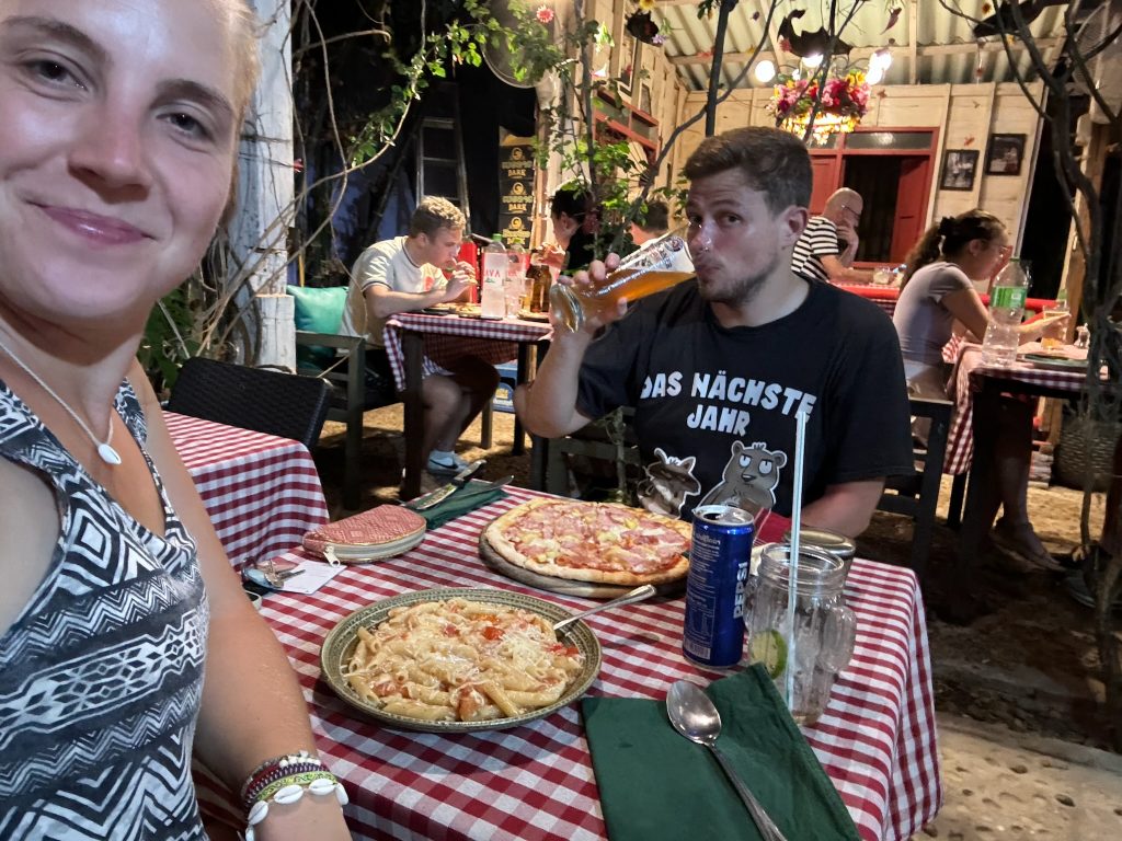Gegen 13:30 Uhr waren wir zurück in Pakse und fuhren in ein Lokal zum Frühstücken. Dabei fing es heftig an zu regnen. Als es etwas weniger wurde, fuhren wir zurück zum Hostel. Da es für Marco alles noch etwas anstrengend war, verbrachten wir den restlichen Tag im Zimmer mit Schlafen und Recherchieren. Die nächsten drei Tage wollten wir eine Tour mit dem Roller durch das Bolaven-Plateau (Pakse-Loop genannt) machen. Dafür buchten wir zwei Unterkünfte. Abends gingen wir beim Italiener essen.