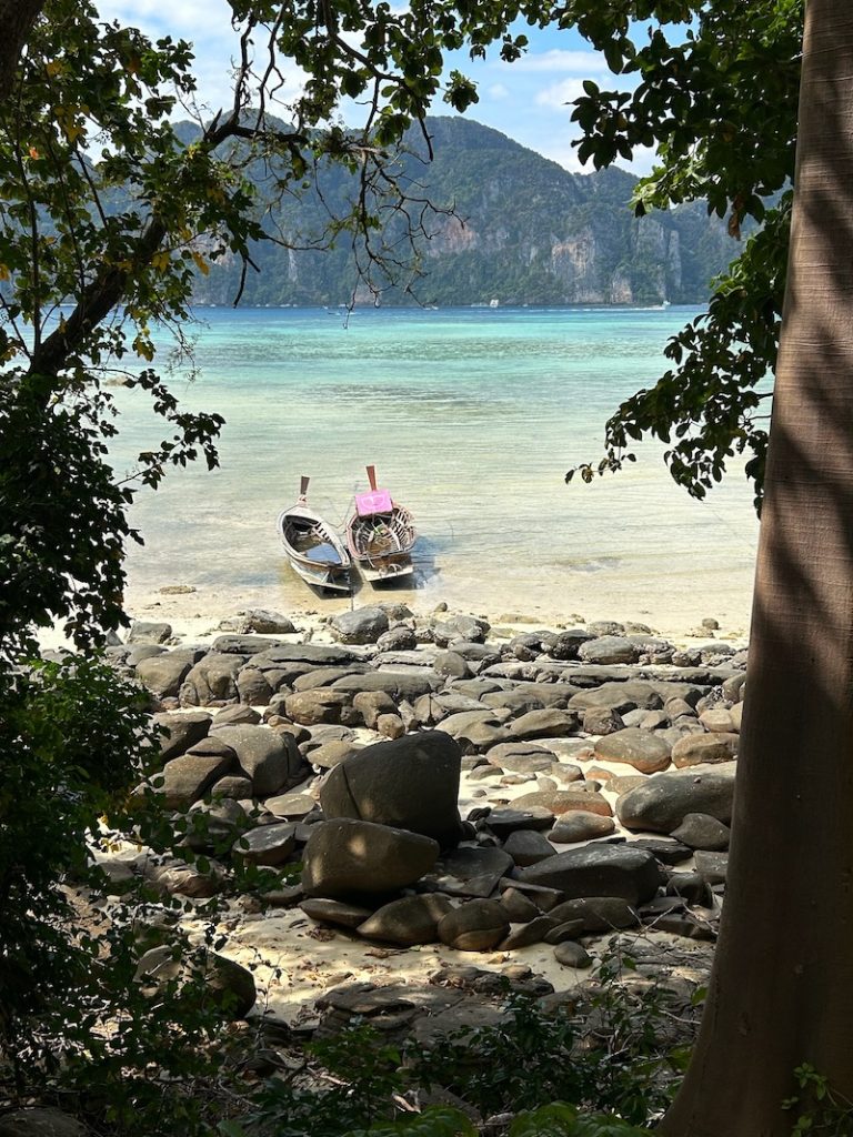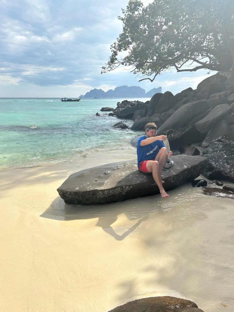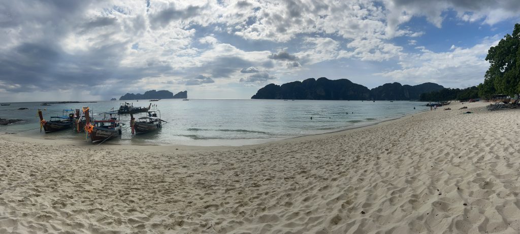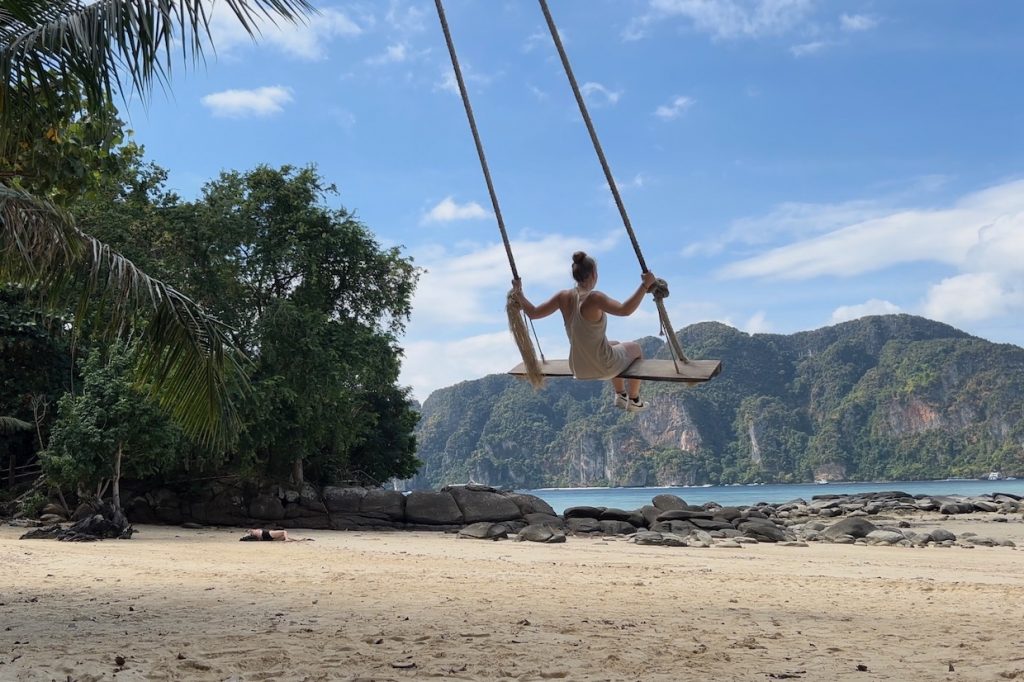 An diesem Morgen ging es zum Long Beach. Bevor wir gestartet sind, haben wir uns bei dem Restaurant vom Vortag am Wasser wieder ein fettes Frühstück geholt. Dann ging es an der Küste entlang über den Love Beach und Viking Beach (mit einer riesigen Schaukel) zum Long Beach. Dort sind wir ins Wasser gegangen und Talea hat es sich nicht nehmen lassen, zum Shark Point zu schwimmen/tauchen, was wir bei der Boots Tour noch ausgelassen hatten. Leider ohne einen kleinen Hai sehen zu können.