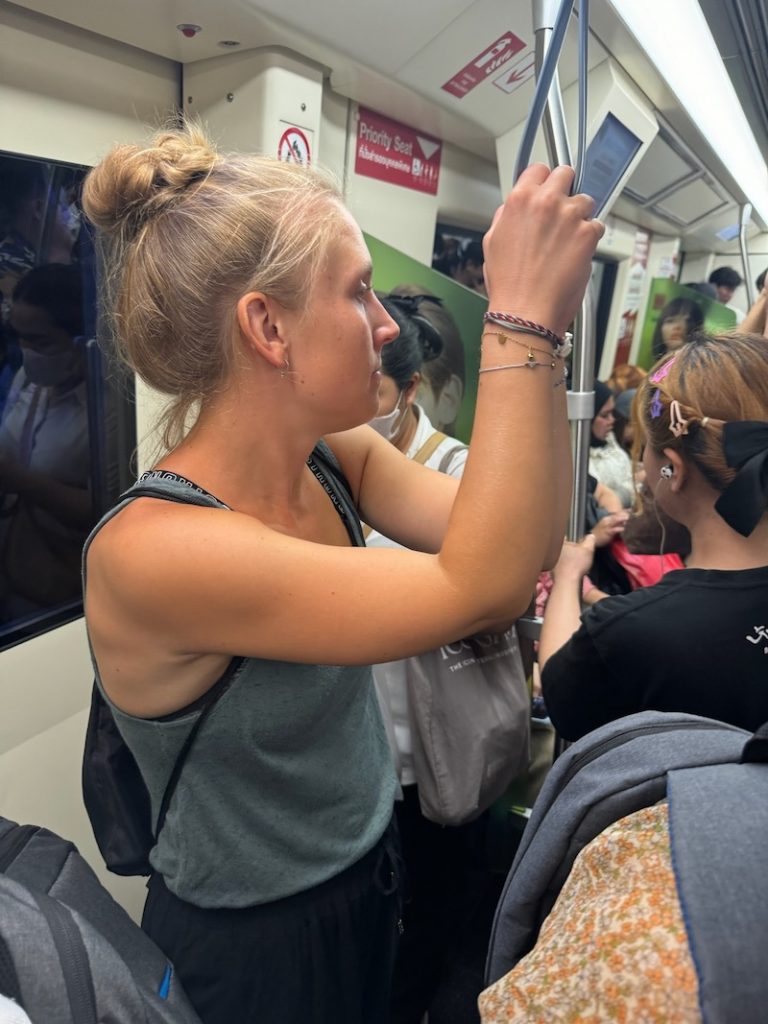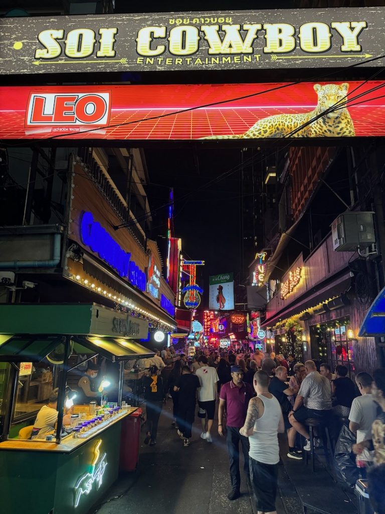 Anscheinend befanden wir uns im Nana-Viertel, einem Rotlichtviertel, von dem wir vorher noch nichts gehört hatten. Auf der Suche nach einem passenden Restaurant liefen wir ein bisschen durch die Straßen. Da ging es echt gut ab mit Bars. Nach dem Abendessen gingen wir noch zur Straße „Soi Cowboy“, eine kurze Straße mit ähnlichen Etablissements. Da sie aus dem Film „Hangover 2“ bekannt ist, wollten wir einen Abstecher dorthin machen. Hier konnten wir auch gleich in unsere Metro-Linie zum Hotel steigen.