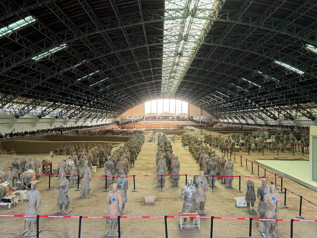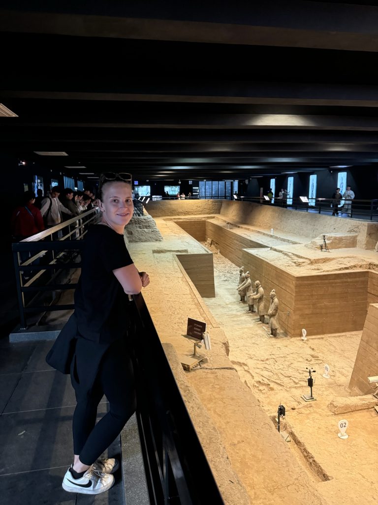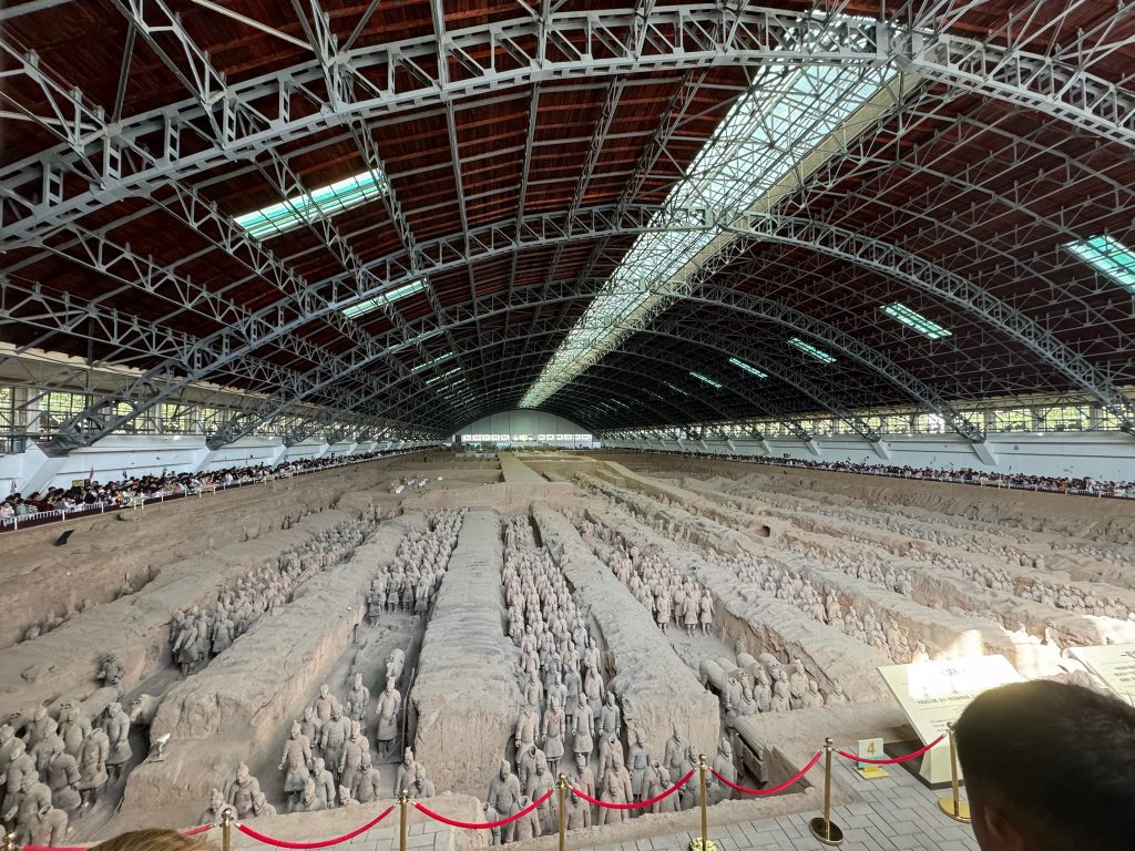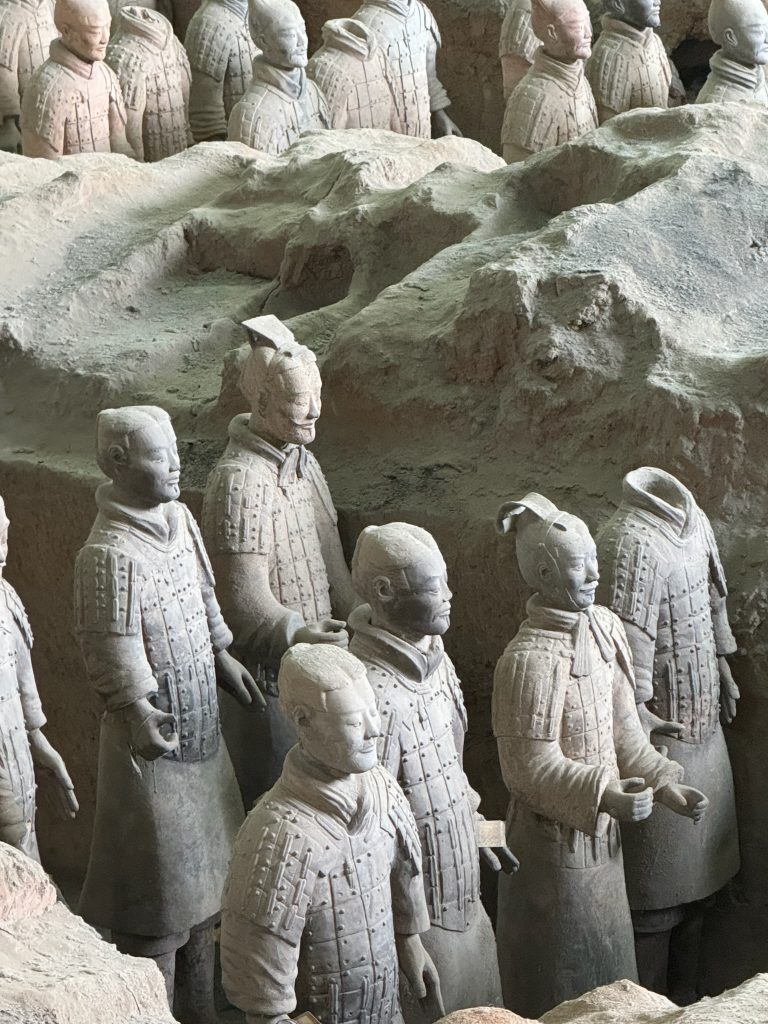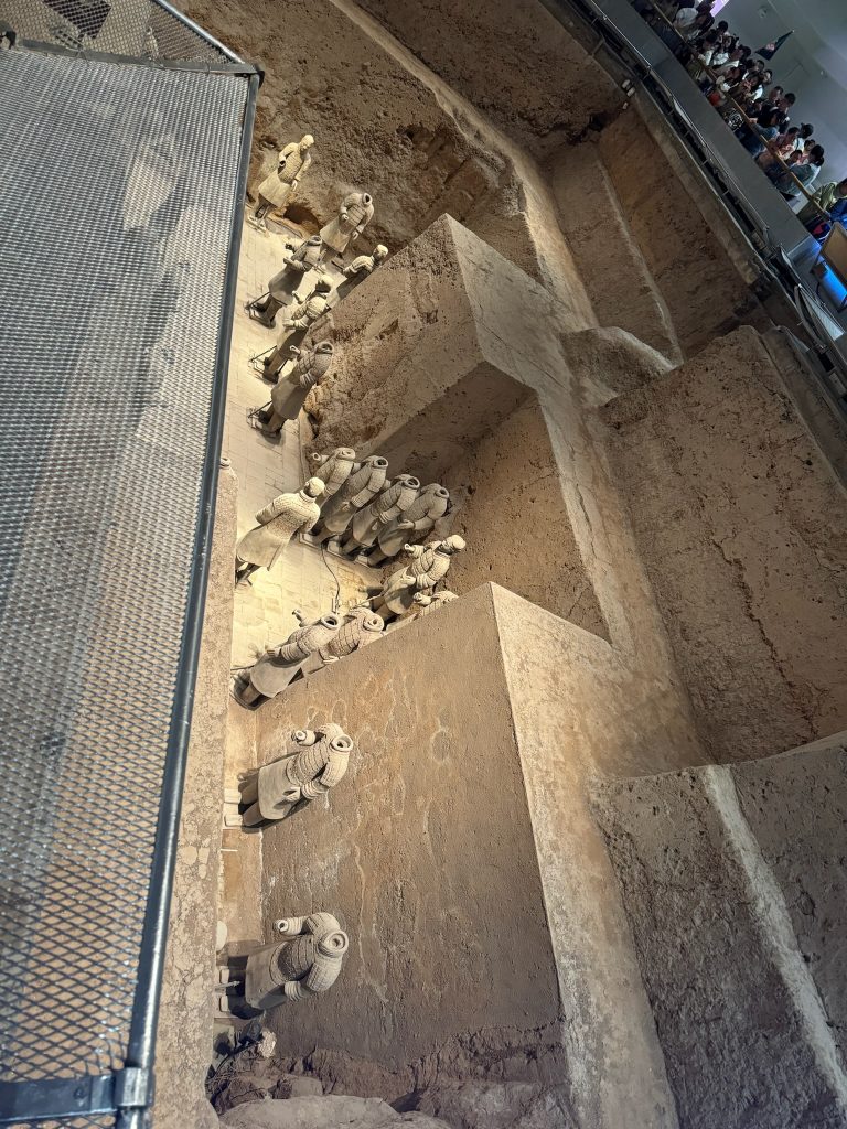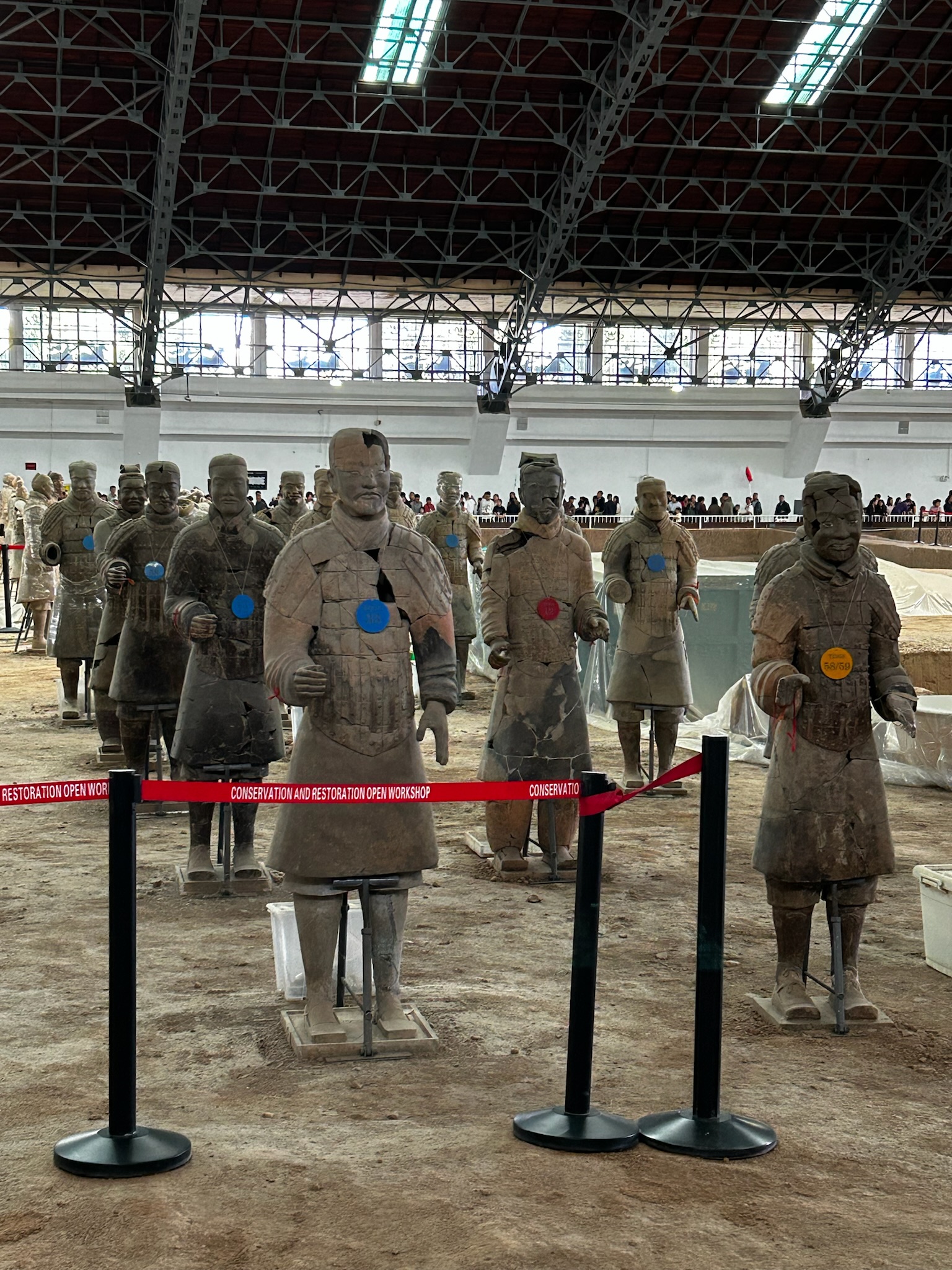 Danach ging es in Halle 1, die größte Halle und das Highlight. Hier sind die meisten restaurierten Krieger in mehreren Gruben/Gängen aufgestellt. Außerdem konnte man die Bereiche der Datensammlung und der Restaurierung sehen. Hier waren einfach unnormal viele Leute, die sich ans Geländer quetschten. Man musste sich regelrecht durchquetschen und freiwerdende Plätze abpassen, um überhaupt etwas zu sehen. So macht Sightseeing keinen Spaß…Ansonsten war die Ausstellung der fast 2.000 Jahre alten Tonfiguren und ihre detaillierte Herstellung beeindruckend.