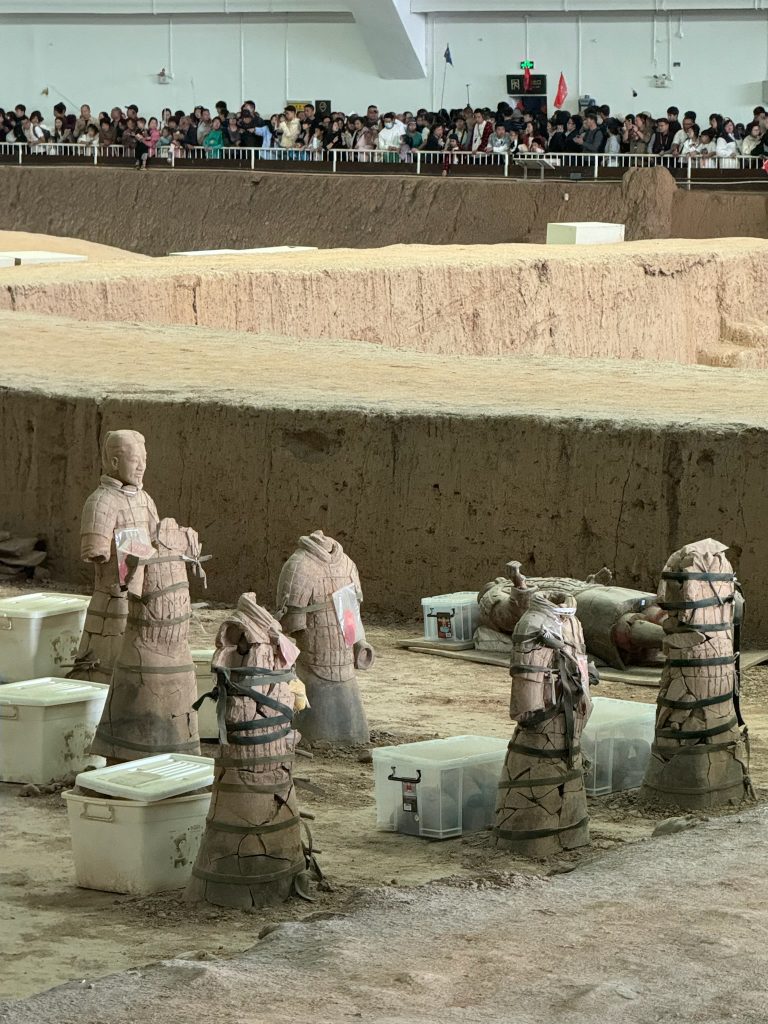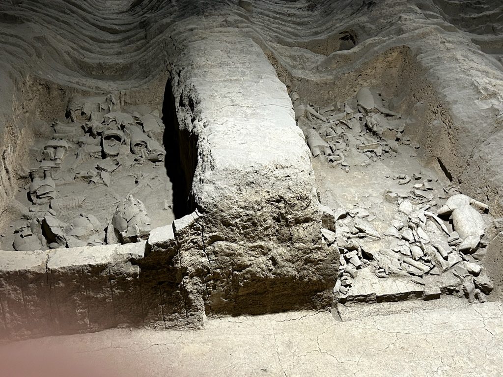 Danach gingen wir in Halle 3. Hier waren nur wenige Gruben freigelegt und man sah die zerbrochenen Tonkrieger und Bruchstücke rumliegen. Die Ausgrabungen sind hier überall noch am Gange.