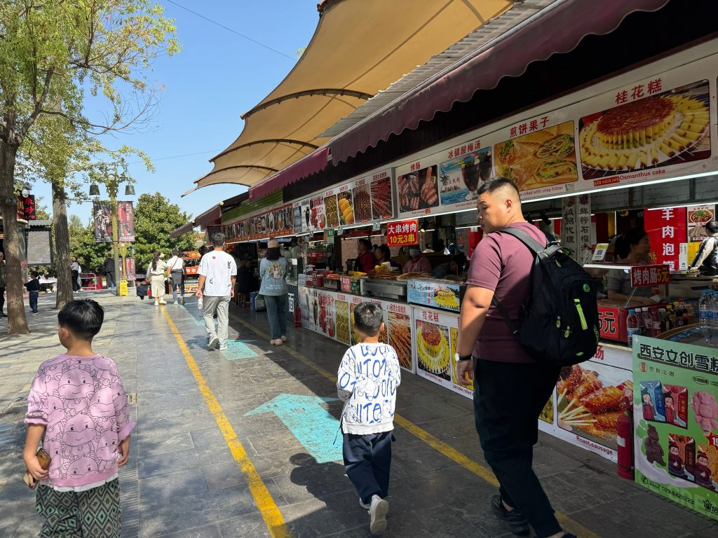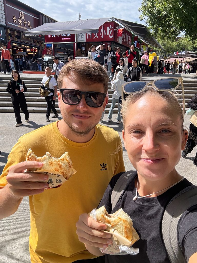 Nach ca. drei Stunden machten wir uns auf den Weg zum Ausgang, wobei man noch über eine Fressmeile mit Souvenir-Shops geleitet wurde. Hier gab es für uns einen „chinesischen Burger“ auf die Hand, was eher einem Döner ohne Salat ähnelt.