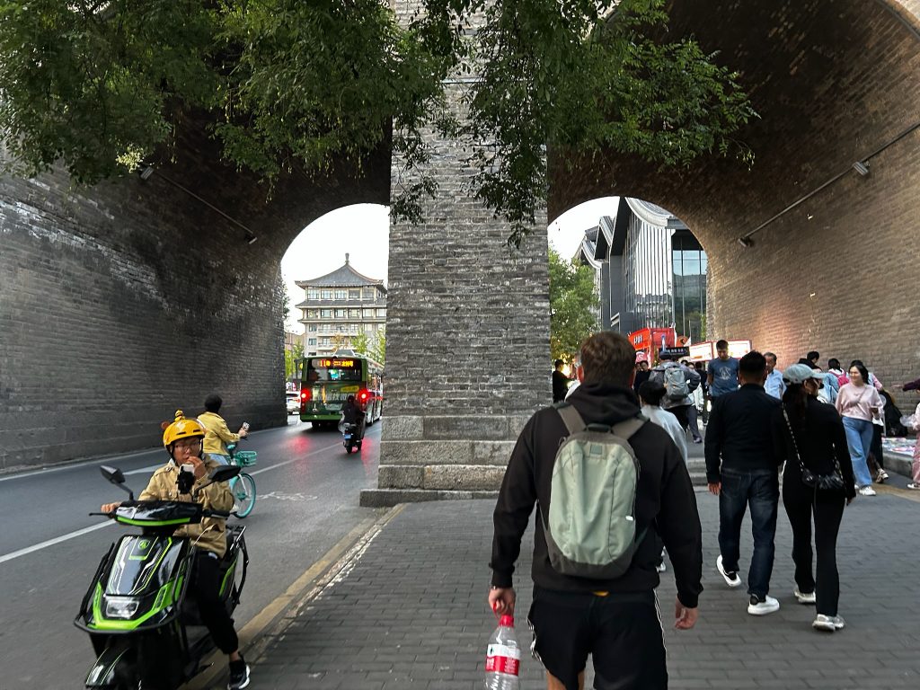 Wir wollten noch ein paar Stationen bis zur alten Stadtmauer fahren und begaben uns rein in die Menschenmenge im Untergrund. Wir gingen durch die Stadtmauer und kamen auf eine belebte Straße. Hier suchten wir uns ein Restaurant aus, diesmal gab es mal wieder Burger in einer Sportsbar. Danach liefen wir die Straße weiter runter bis zum Glockenturm. Es ist mittlerweile dunkel geworden, sodass der Turm angeleuchtet wurde. Hier stiegen wir wieder in die Metro, was unterirdisch noch ein recht weiter Weg war, und fuhren ca. 30 Minuten bis zu unserem Hotel. Auf dem Weg kauften wir noch Wasser und Bananen. An der Rezeption klärte Marco die Angelegenheit mit unserer Abrechnung und danach ging es zeitig ins Bett, heute sind wir 25 km gelatscht.