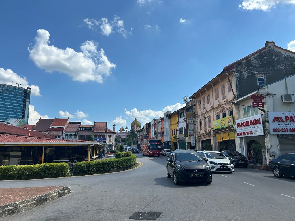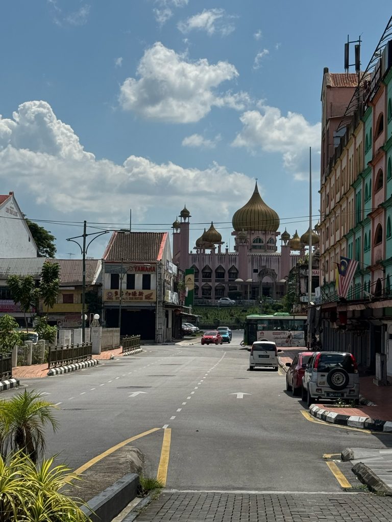 Später fuhren wir mit einem Grabtaxi (ca. 1€) in die Stadt, gingen zur Post und zum Touristeninformationscenter, um uns dort nach öffentlichen Bussen in die anderen Nationalparks zu erkundigen. Hier konnte uns mit konkreten Informationen weitergeholfen werden, allerdings hatte auch er keinen Zeitplan der Abfahrtzeiten. Danach gingen wir auf die Danul Hana Brücke mit Blick auf die „floating Moschee“. Anschließend liefen wir noch ein bisschen durch die Straßen, über die Marktstraße von Little India und durch China Town. Danach bestellten wir uns ein Grab zurück ins Hotel, wo wir am späten Nachmittag wieder ankamen. Während Marco im Fitnessstudio war, arbeitete ich am Reiseblog. Danach bestellten wir uns Essen über Grab, was leider wieder zu scharf für mich war… Anschließend gingen wir noch zu einem Waschsalon bei uns die Straße runter, um ein letztes Mal unsere Wäsche zu waschen. Während wir warteten ging ich zum 7-Eleven daneben, um Proviant für die nächsten Tagesausflüge zu kaufen.