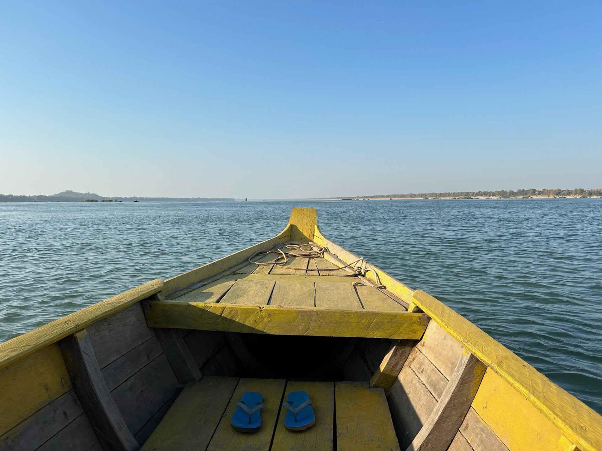 Mittlerweile sind wir geübt im frühen Aufstehen. Wir mieteten uns um 6:30 Uhr einen Roller in unserer Unterkunft. Wir mussten noch ca. 30 Minuten nach Kampi fahren, wo der Bootsanleger für die Delfin-Tour war. Hier konnten wir, wenn wir Glück haben, die seltenen Irawadi-Delfinde sehen. In einem Blog haben wir gelesen, dass die Delfine morgens vermehrt zu sehen sind, weil sie hungrig sind. Um 7:30 Uhr stiegen wir in ein Boot mit Motorantrieb und waren das erste Boot auf dem Mekong. Kurz nach uns kam noch ein anderes Boot mit zwei Touristen, mit denen wir nach den Delfinen Ausschau hielten. Und wir hatten Glück – wir haben einige Delfinrücken gesehen.