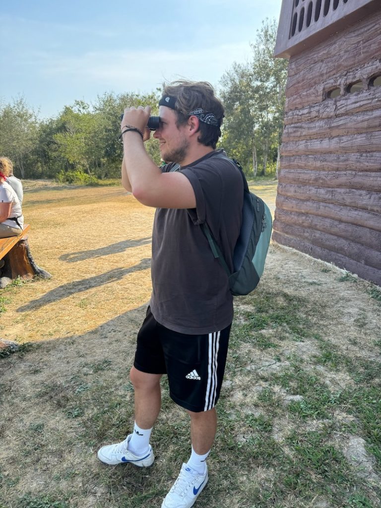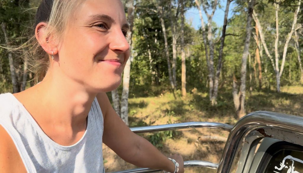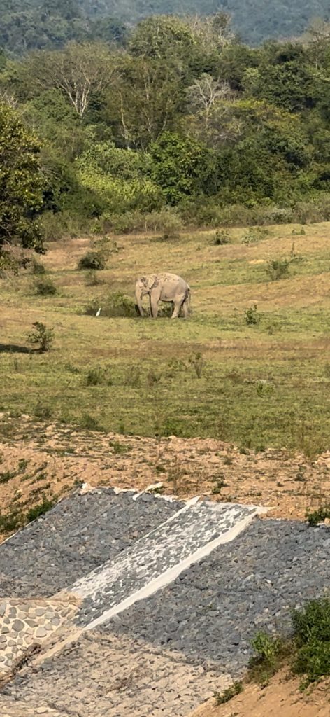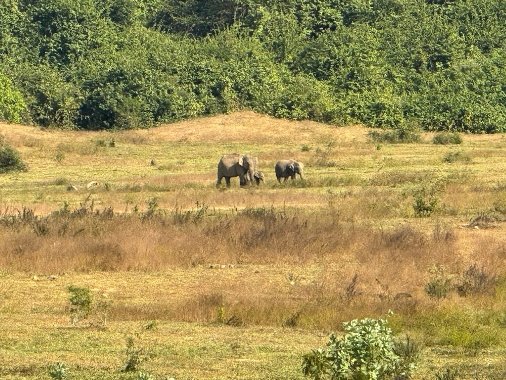 Um 13:30 Uhr wurden wir von unserem Guide abgeholt und mussten leider noch 1,5 Stunden zum Nationalpark fahren. Wir mussten eine private Tour buchen, weil die Gruppentouren schon ausgebucht waren. Dort angekommen stiegen wir mit unserem Guide und einer Rangerin in einen Geländewagen und fuhren los. Auf einmal fing unser Guide, der die ganze Fahrt geschwiegen hatte, an zu erzählen. Die Rangerin hielt Ausschau nach Tieren und er erzählte uns alles über den Park und die Elefanten. Wir hielten an einem Spot auf einer Erhöhung mit Aussichtsturm und Blick auf eine Lichtung. Von Weitem konnten wir die Elefanten schon sehen. Wir stiegen aus und beobachteten die Elefanten beim Fressen, wie sie in ein Wasserloch zum Baden stiegen und aus Spaß miteinander kämpften, bis sie hinter Büschen verschwanden. Es waren fünf Elefanten mit einem Baby-Elefanten. Sie waren leider so weit weg, dass man sie am besten mit einem Fernglas beobachten konnte, aber es war schon cool Elefanten in freier Wildbahn zu sehen. Wir fuhren noch zu zwei weiteren Spots an einer Lichtung aber haben leider keine Elefanten mehr gesehen. Unser Guide zeigte uns aber noch Termiten-Bauten, Eukalyptus und andere Pflanzen, aus denen er sich immer einen Schnaps brennt. Bei der Fahrt durch den Wald sahen wir zwei Mal im Gebüsch noch wilde Gaure (der größte lebende Vertreter der Rinder). Nachdem wir ca. zwei Stunden im Nationalpark unterwegs waren, ging es gegen 17:30 Uhr wieder zurück. Auf dem Rückweg hielten wir noch in einem Lokal. Das Essen war kostenlos, aber die Getränke mussten wir zahlen. Zum Glück war Marco erst nach dem Essen bei denen auf Toilette. Da sah es aus, wie bei einem Serienmörder im Hinterhof: es war dreckig, sehr viele Tiere und irgendwie suspekt. Am frühen Abend sind wir dann etwas erschöpft im Hotelzimmer angekommen.