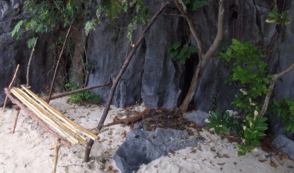 Der nächste Halt war der Strand der Shimizu Island, wo wir eine Lunch-Pause machten. Wir mussten wegen der Steine zur Insel schwimmen und die Besatzung hat einen Tisch sowie das Essen in Kühlboxen schwimmend an den Strand gebracht. Es gab Reis, Fleisch, Fisch, Gemüse und Bananen. Am Rand der Bucht haben wir einen großen Waran (Monitor Lizard) gesehen.