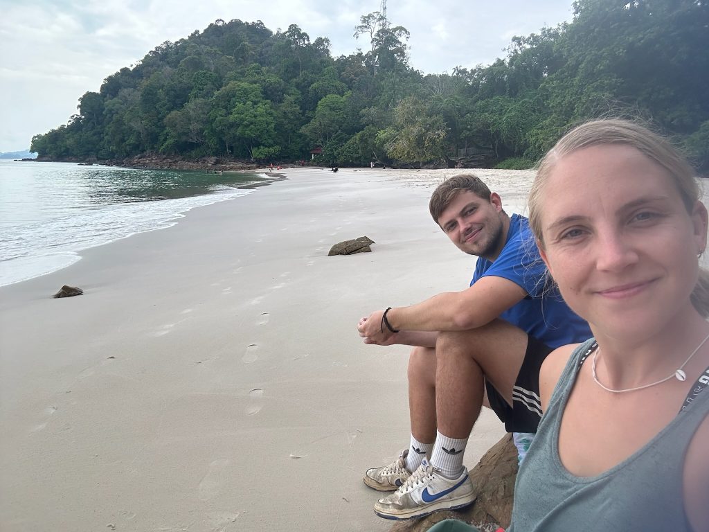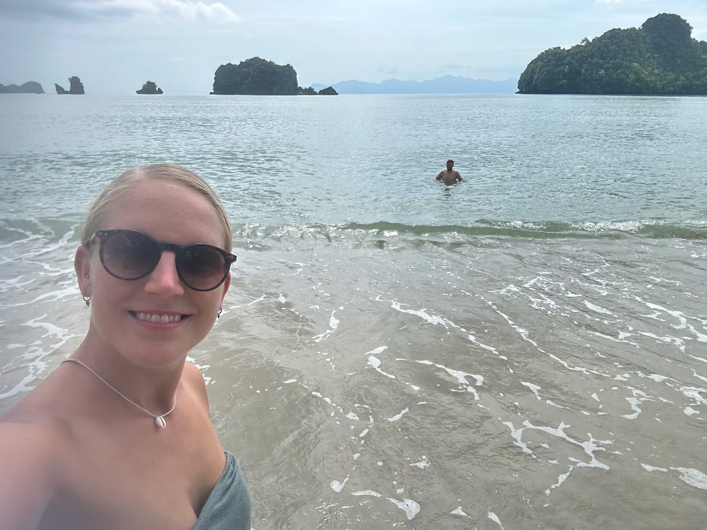 Da wir uns hier sehr deplatziert gefühlt haben (es ist ein 5 Sterne Resort), fuhren wir weiter zum öffentlichen Bereich des Tanjung Beachs. Hier bestellten wir uns in einem Lokal einen richtigen Mittagssnack. Mein Essen war mal wieder zu scharf, sodass ich es an Marco abgeben musste. Danach liefen wir den Strand runter und Marco ging baden. Da ich aber Sandfliegen entdeckte, konnte ich trotz Einsprühen hier nicht entspannt sitzen und somit machten wir uns zeitnah gegen 17 Uhr wieder auf den Rückweg. Diesmal fuhren wir einen anderen Weg, einmal quer über die Insel an einem Berg vorbei. Zurück im Hotel hüpften wir nochmal in den Pool und nach dem Duschen ging es zum Abendessen.