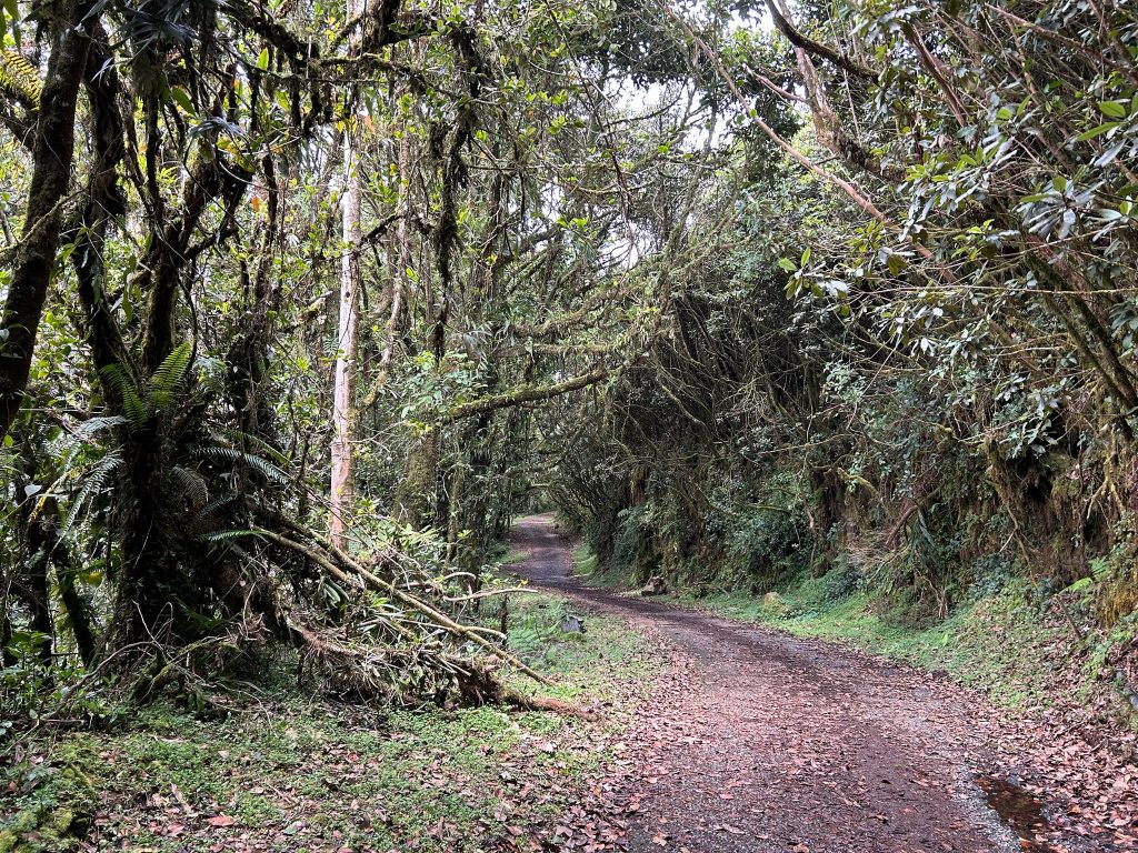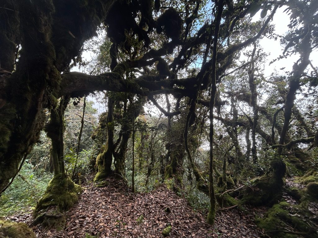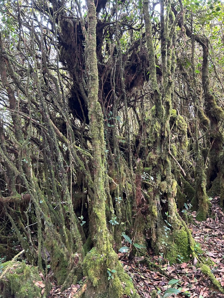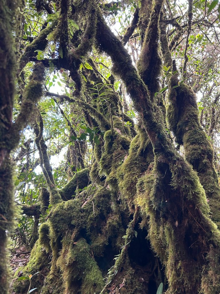 Anschließend ging es weiter den Berg hoch in den Dschungel zum „Mossy Forest“. Die Straße war schmal und unser Guide ist ziemlich geheizt – er kennt sein Auto. Oben angekommen hatten wir von der Aussichtsplatform mal wieder keinen Ausblick und blickten nur auf die graue Wolkenwand. Hier ist es dauerhaft feucht, sodass im höchsten Bereich die Bäume und alles komplett mit Moos bewachsen ist. Wir gingen erst eine Straße lang bis wir zu dem Pfad durch den feuchten Wald kamen. Unser Guide zeigte uns wilde Orchideen, Kannenpflanzen und erklärte uns alles rund um das Moos. Nach dem Rundweg war die Tour zu Ende und es ging zurück nach Tanah Rata. Die Rückfahrt dauerte leider etwas länger, weil wir im Stau standen. Gerade in dieser Woche sind hier Ferien und alle sind mit ihren Autos unterwegs zu den Touristen-Spots auf der Strecke.