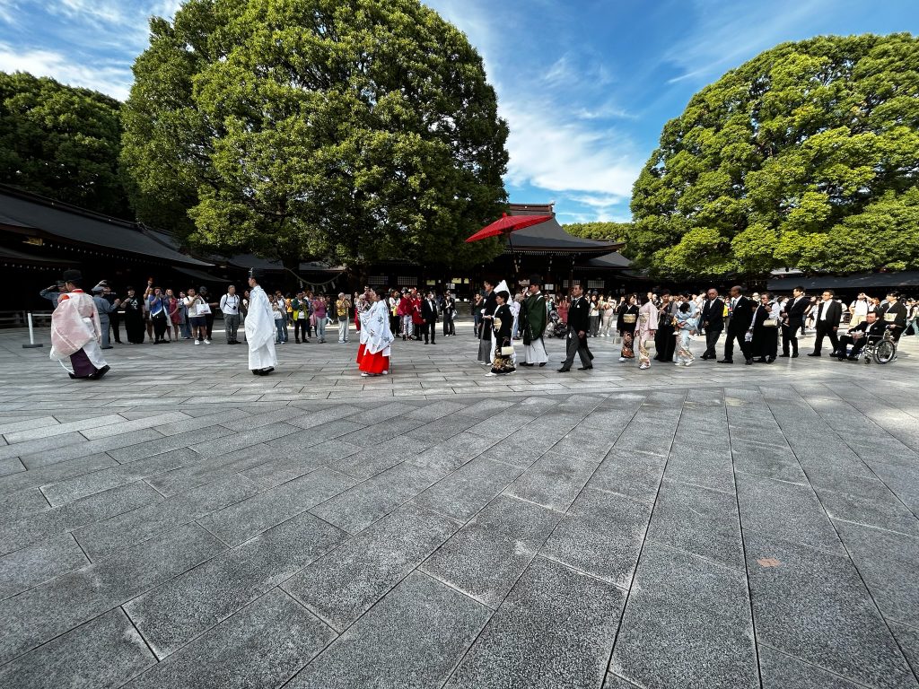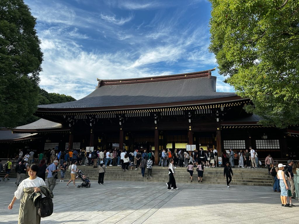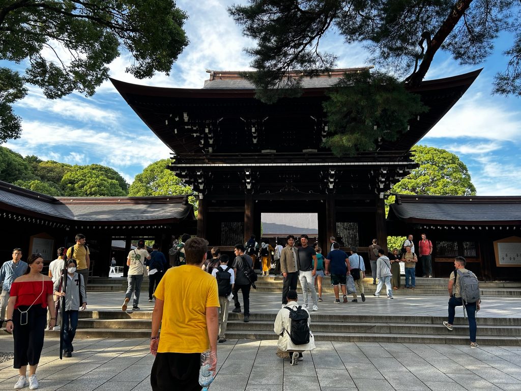 Von hier liefen wir durch einen großen Park, in dessen Mitte der Meiji-Schrein steht. Hier konnten wir einen Einmarsch für wahrscheinlich eine Hochzeit beobachten. Auf der anderen Seite liefen wir aus dem Park hinaus und fuhren eine Station bis ins Shinjuku-Viertel.