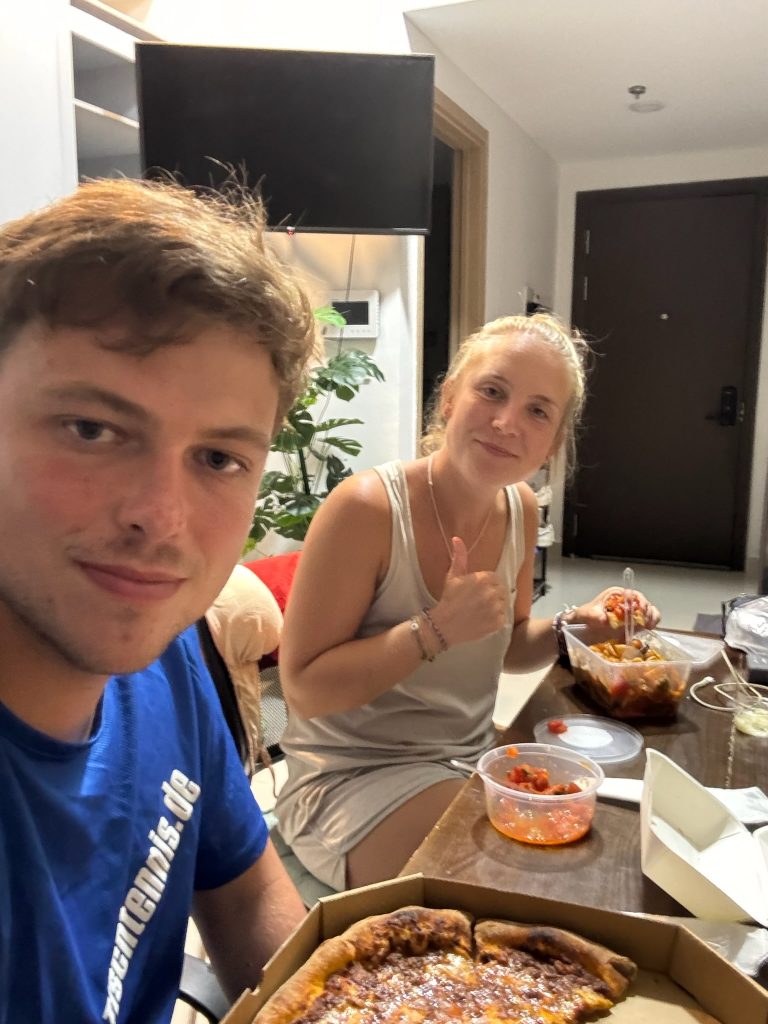 Gegen 16 Uhr waren wir beide fertig. Nachdem wir endlich im Apartment angekommen waren, hatten wir heute keine Lust mehr was zu machen. Wir gaben noch unsere Wäsche bei einem hausinternen Service ab, die sogar noch am gleichen Abend fertig war, arbeiteten an unserem Reiseblog und bestellten uns abends Essen (italienisch) über Grab. Wir hatten wieder ein Apartment ähnlich wie in Phnom Penh, mit Pool und Fitnessstudio, aber diesmal nur im fünften Stock, mit richtiger Küche und es war deutlich mehr los.