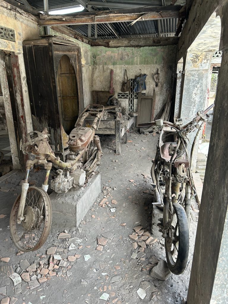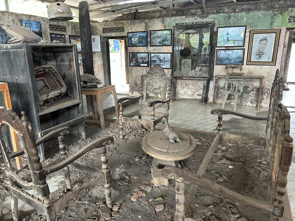 Als nächstes fuhren wir durch den Wald zu einem Museum, ein altes Haus, das bei dem letzten großen Ausbruch 2010 zerstört wurde und wo alle übrig gebliebenen Sachen ausgestellt wurden: Kuh-Skelette, Stühle, Motorräder, geschmolzene Behälter usw.. Außerdem hingen Bilder an den Wänden, vom Vulkan, den Menschen und der Landschaft nach dem Ausbruch. In der Gegend stehen noch einige Reste der zerstörten Häuser, 5-8 km vom Vulkan entfernt.
