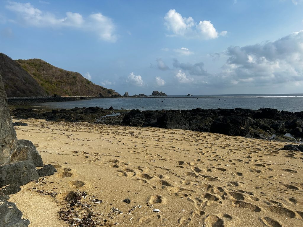 Am späten Nachmittag fuhren wir ein Stück weiter zur nächsten Bucht, zum Tampah Beach. Hier war nicht so viel los mit Strandbars und die Ebbe ist schon eingetreten. Wir liefen ein Stück am Strand entlang, was in dem groben Sand irgendwie super anstrengend war, weil man immer weggerutscht ist. Wir setzten uns auf ein paar Steine und beobachteten Fischer, die im Wasser standen und per Schlägen mit Stöckern auf das Wasser wohl irgendwie die Fische zusammentreiben wollten oder sowas. Nach ca. einer Stunde machten wir uns auf den Rückweg in die Stadt und suchten uns ein Restaurant aus zum Abendessen. Nach dem Duschen war ich noch kurz mit Freunden zum Skypen verabredet.