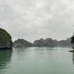 Wir fuhren weiter bis zum Ende der Straße, machten eine kurze Pause am Hafen mit Blick auf die Bucht mit einigen Felsen und machten uns dann wieder auf den Rückweg. Dabei hielten wir noch an der Trung Trang Höhle, die in dem Ticketpreis von der Bergbesteigung mit drin ist. Dann hieß es erst mal wieder Treppen steigen bis zum Eingang der Höhle. Und dann gingen wir einfach 10 Minuten lang einen schmalen, betonierten Weg durch die Höhlen durch den Berg durch. Von dem Höhlenausgang mussten wir dann an der Straße wieder zurücklaufen.