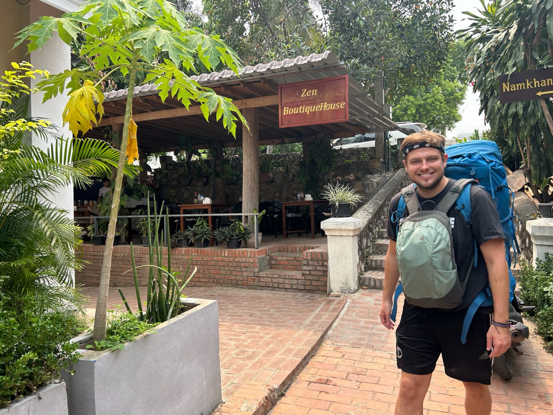 Um 13:35 Uhr sind wir in Vang Vieng angekommen. Dort haben uns auch nicht – wie in anderen Ländern – 10 Leute bedrängt, ins überteuerte Taxi zu steigen, sondern wir wurden gut koordiniert zu abfahrbereiten Bussen gelotst. Für 30.000 Kip (etwas mehr als 1€) pro Person wurden wir ins Stadtzentrum gebracht, was auch nur 10 Minuten entfernt liegt. Von dort aus mussten wir nur ein paar Minuten zu unserem Hotel laufen und konnten dann um 14:30 einchecken.