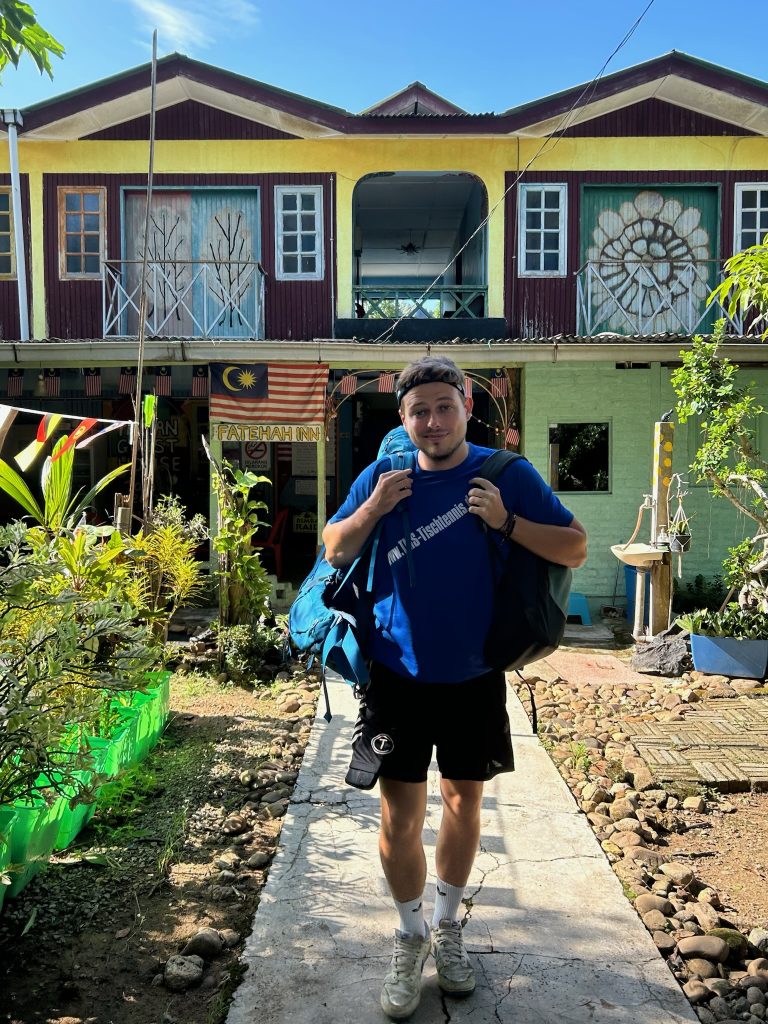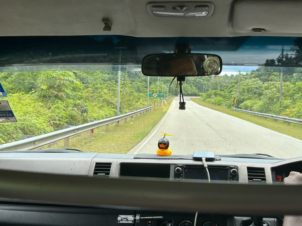 Unser Van fuhr heute um 10 Uhr, also hatten wir noch Zeit für ein Frühstück im Ort. Nachdem wir unsere Sachen gepackt hatten, checkten wir aus und unser Gastvater brachte uns mit seinem Pickup zum Sammelpunkt um die Ecke. Mit uns waren wir vollständig und die Fahrt ging los zurück nach Jerantut. Hier wurden wir wieder am Booking Office abgesetzt und mussten noch 1,5 Stunden warten, bis unser nächster Van losfuhr. In der Zeit wollten wir uns irgendwo reinsetzten, haben nichts besseres als KFC gefunden und somit gab es für jeden ein kleines Burger-Menü. Auf dem Rückweg gingen wir noch in einen größeren Supermarkt, wo wir (seltenerweise) Obst für die Fahrt kaufen konnten.