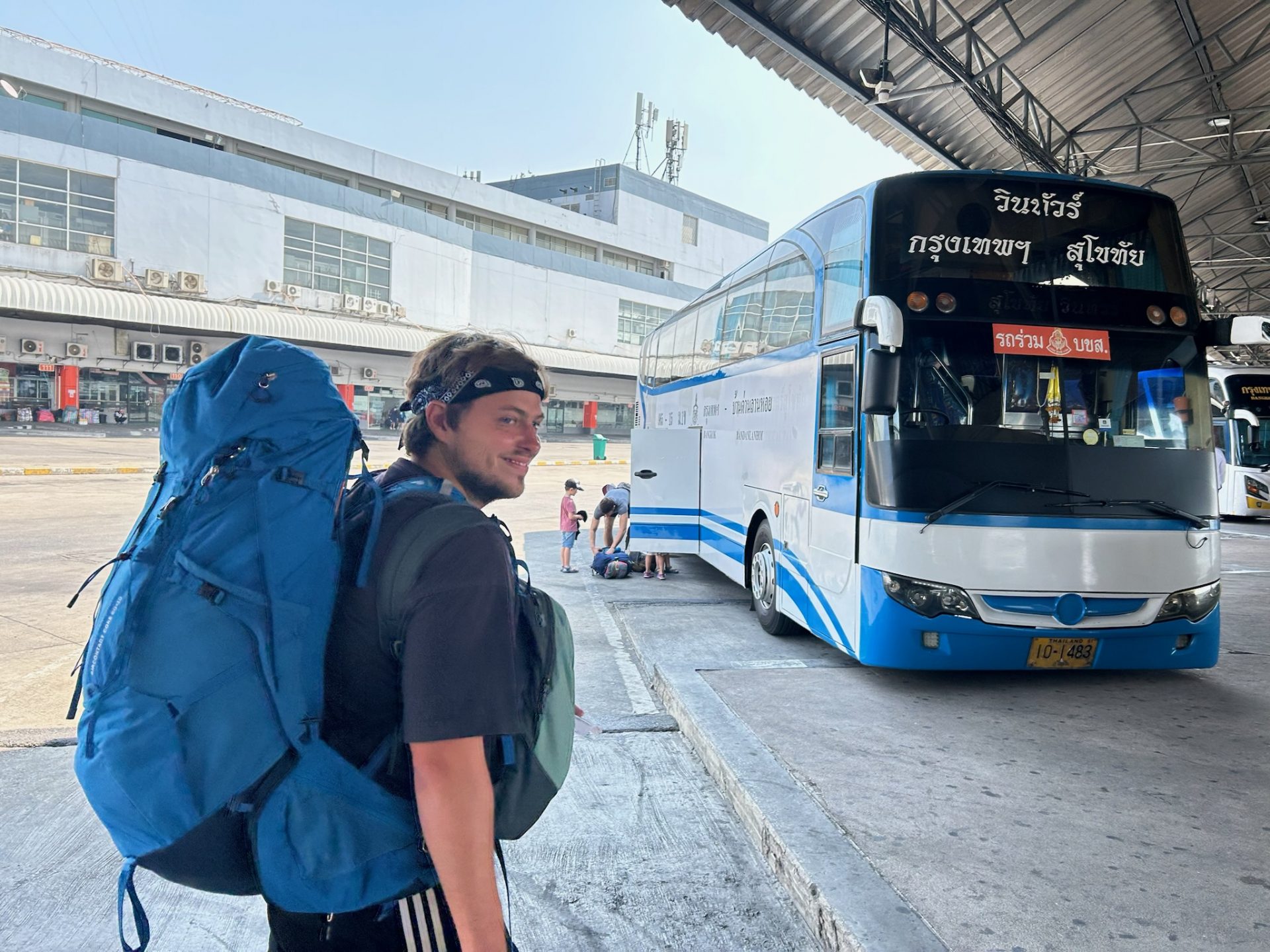 Heute ist unser Reisetag nach Sukhothai, Richtung Nordthailand – schön mit kleinem Kater…Zum Glück haben wir den Bus ab Mittags gebucht. Um kurz vor 12 haben wir ausgecheckt und uns das erste Mal über „Grab“ ein Taxi gerufen. Das hat super geklappt und ist auch noch günstiger. Wir fuhren ca. 15 Minuten zum Busterminal und holten uns dort unser Ticket am Schalter ab. In der Wartezeit holten wir uns Snacks für die Fahrt und Chicken-Burger von KFC zum Frühstück. Um 13 Uhr fuhr der Bus los nach Sukhothai und wir freuten uns aufs Schlafen. Die Fahrt dauerte 6-7 Stunden und wir machten eine Mittagspause an einer Raststätte.
