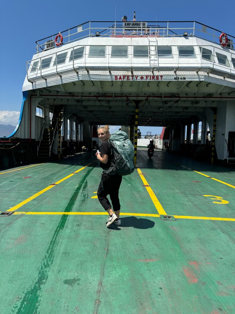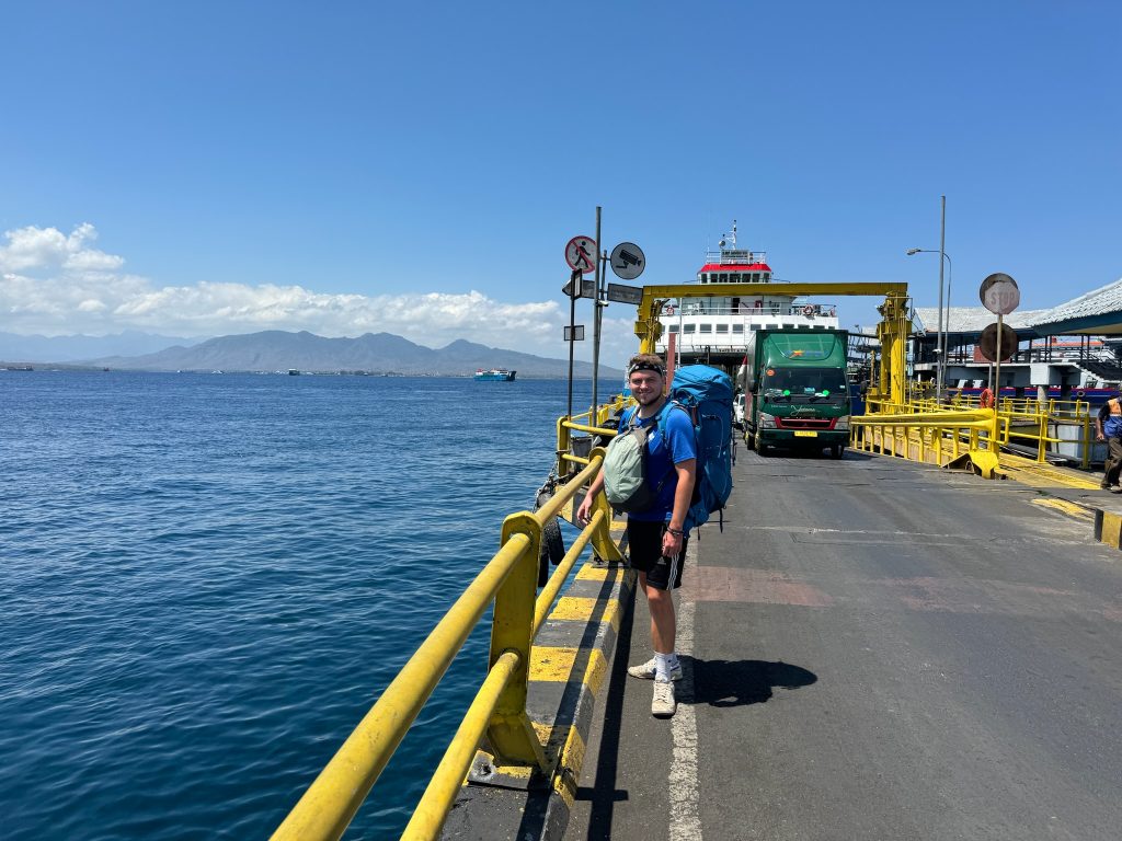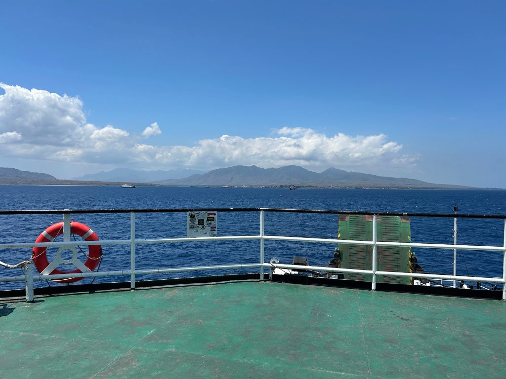 Um 11 Uhr hatten wir die Fähre nach Bali gebucht. Nach dem Frühstück buchten wir noch ein Hotel auf Bali in Ubud. Nach 10 Uhr checkten wir aus, riefen uns ein Grab (für die paar Minuten Fahrt zum Fähranleger) und holten uns im Supermarkt dort noch Wasser. Wir druckten uns am Automaten mit unseren E-Tickets unsere physischen Tickets aus und wurden nach und nach von Mitarbeitern zur Fähre geleitet. Die Fahrt dauerte nur 30 Minuten aber wir mussten noch vorm Anleger in Gilimanuk, Bali warten, bis wir anlegen konnten, was uns aber nicht störte, da wir genug Puffer hatten – dachten wir…