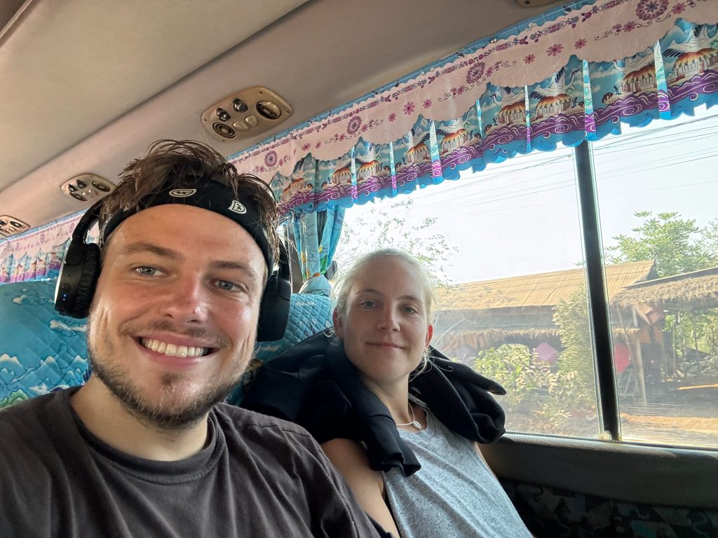 Heute ist unser Abreisetag. Marco holt Frühstück im Supermarkt und nach dem Packen checkten wir gegen 9 Uhr aus. Die Busstation lag zufällig direkt an unserer Straßenecke – die Unterkunft lag diesmal zufällig mal wieder sehr praktisch. Um 9:30 Uhr fuhr der Minibus nach Siem Reap. Die Fahrt dauerte ca. 3 Stunden mit einer kurzen Pause. Wir kamen im Süden der Stadt an und da unsere Unterkunft im Norden der Stadt lag (Lage zwischen der Stadt und der Tempelanlage um Angkor Wat), mussten wir noch mit einem Tuk Tuk 3 km fahren. Von dem Busanbieter haben wir 1 km geschenkt bekommen.
