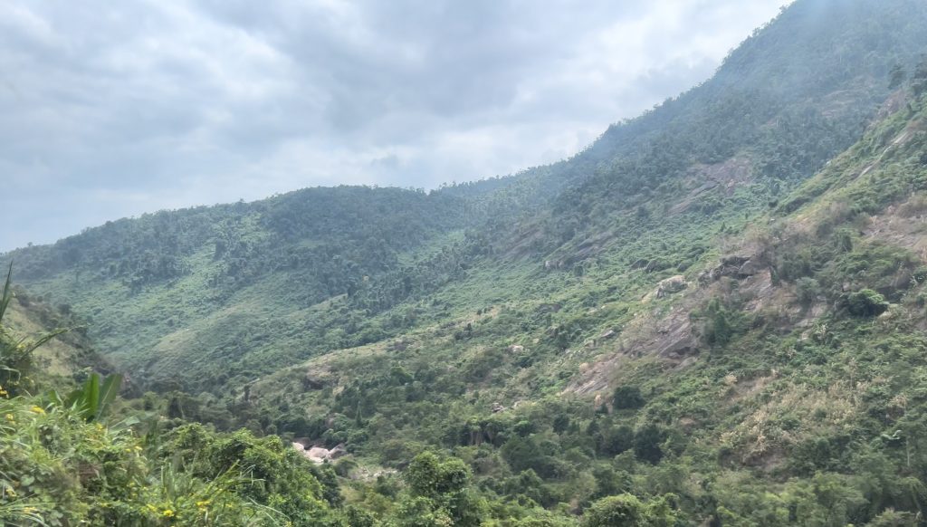 Heute morgen checkten wir aus und fuhren um 8 Uhr mit einem Grab ca. 15 Minuten zur Busstation. Unser Van sollte eigentlich erst um 9:15 Uhr fahren, aber da wir durch uns dann schon vollzählig waren, fuhren wir eine halbe Stunde früher los. Die Fahrt nach Nha Trang dauerte ca. 3 Stunden durch die Berge runter an die Küste und unser Fahrer fuhr sehr gesittet. Unterwegs machten wir eine kurze Pause, wo wir uns ein Banh Mi (belegtes Baguette) zum Frühstück holten.