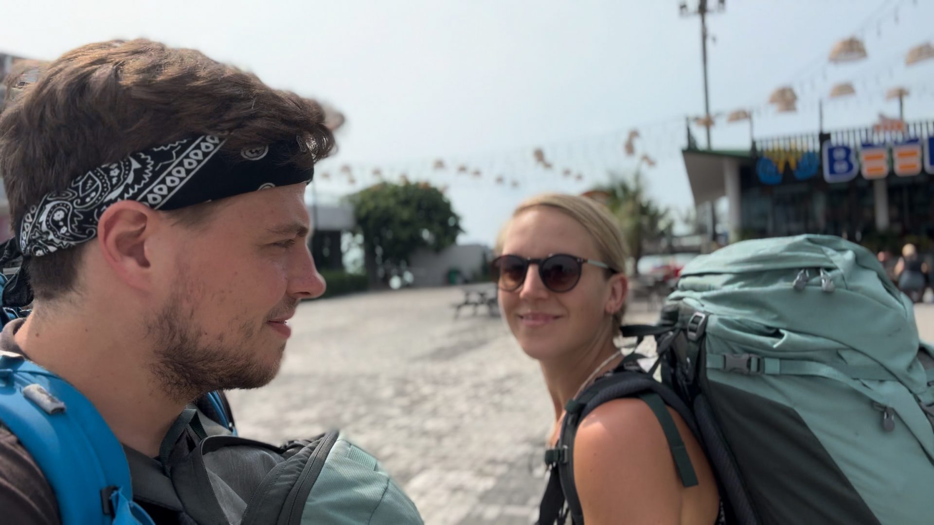 Heute sind wir um kurz nach 8 Uhr mit dem Roller in das Lokal vom Vorabend im hippen Viertel gefahren, um dort zu frühstücken. Danach suchten wir noch einen ATM, weil wir vor dem Inselbesuch lieber nochmal Bargeld abheben wollten. Anschließend gaben wir den Roller ab und liefen zu unserem Hotel zum packen und auschecken. Wir waren unüblicherweise mal überpünktlich fertig aber wurden auch pünktlich um 10 Uhr abgeholt. Wir wurden zu einer Busstation gebracht, wo wir nochmal in einen anderen Minibus umsteigen mussten. Um 10:30 Uhr ging die Fahrt los nach Sihanoukville zum Fähranleger. Die Fahrt dauerte insgesamt 2,5 Stunden mit einer kurzen Pause. Davon wurden wir 1 Stunde lang in dem alten Bus auf einer Schotterpiste heftig durchgerüttelt – das war mit die schlechteste Straße, die wir in Kambodscha erlebt hatten. Auf der Fahrt hat es sogar mal kurz geregnet.