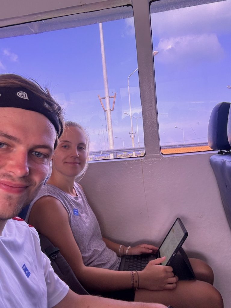 Heute war unser Reisetag nach Koh Phangan. Um 9 Uhr checkten wir aus, frühstückten in unserem Cafe und gingen zu Fuß zum Pier. Wir hatten die Tickets für die Fähre online gebucht, am Pier mussten wir aber nochmal einchecken. Man kriegt dann immer einen Sticker, die man sich auf das Shirt kleben muss, damit die Crew weiß, wo man hin will :D. Um 10:30 Uhr ging die Fähre und die Fahrt dauerte 1 Stunde.