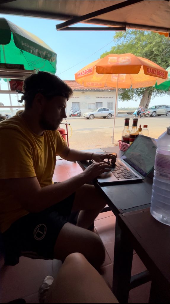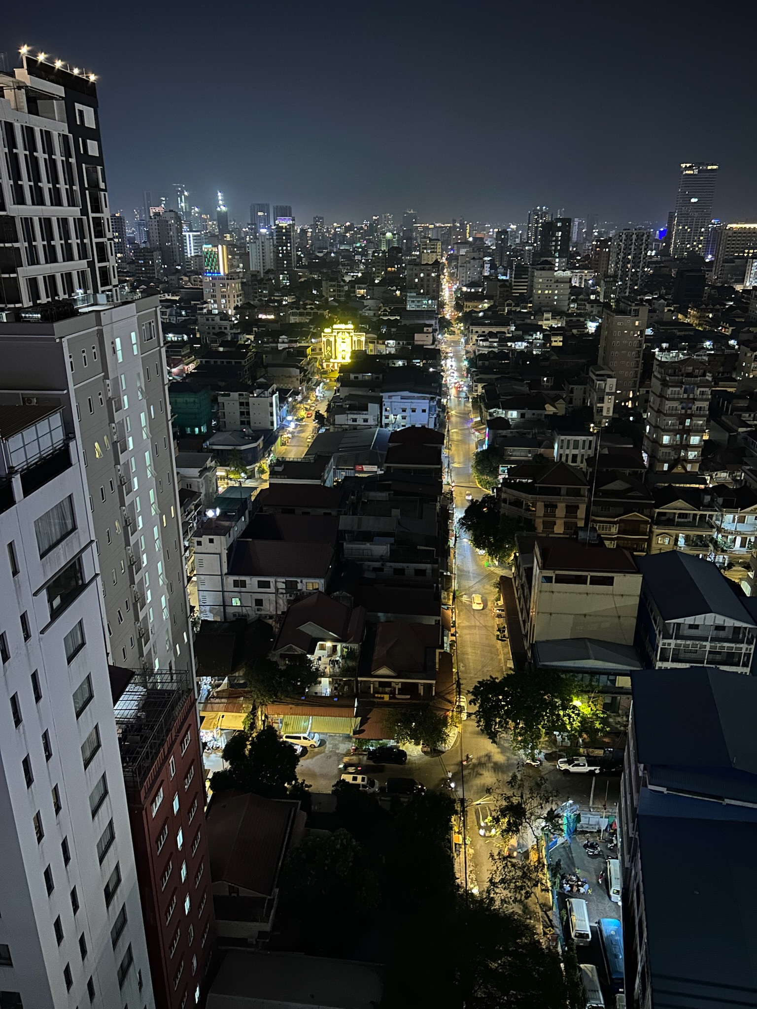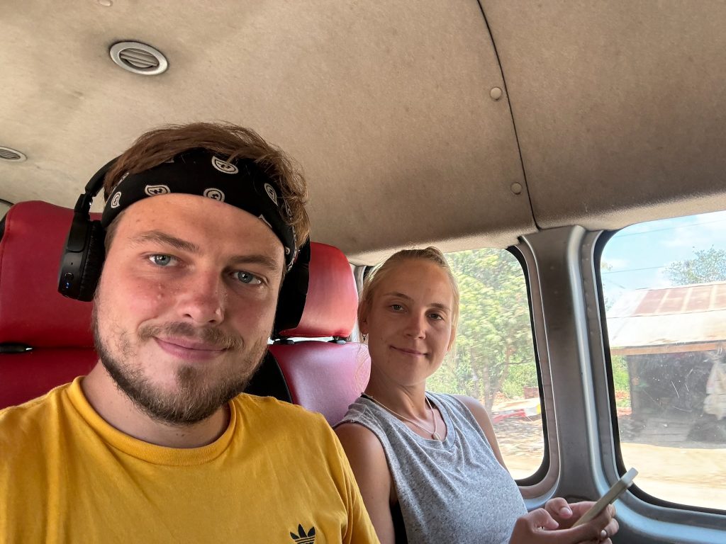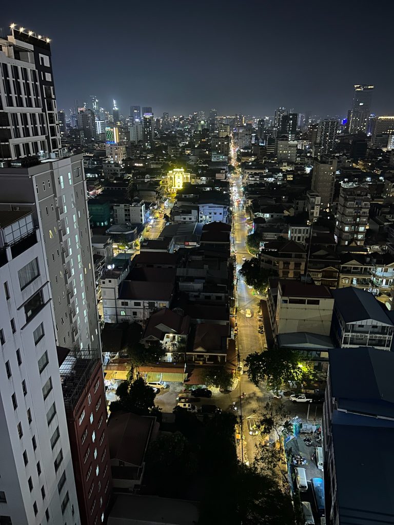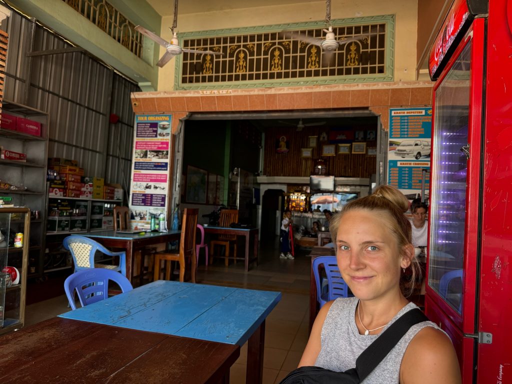 Da unser Bus heute erst um 12:30 Uhr fuhr, konnten wir ausschlafen. Um 10 Uhr frühstückten wir in unserer Unterkunft – warum nicht gleich hier? Es war auch gut und günstig. Wir chillten noch ein bisschen auf unserem Zimmer bis wir packten und um 12 Uhr auscheckten. Leider hatte unser Minibus Verspätung, kurvte dann noch durch den Ort, um noch Leute einzusammeln und die Fahrt dauerte 5 Stunden anstatt laut Plan 2,5 Stunden…Wir dachten, wir würden den Nachmittag noch in Phnom Penh haben aber so kamen wir um 18 Uhr in der Stadt an. Die Unterkunft hatten wir wieder fußläufig in der Nähe der Busstation gebucht, wo unser Bus am nächsten Tag nach Ho-Chi-Minh-Stadt abfahren würde. Dort mussten wir noch ca. 15-20 Minuten wegen Rushhour mit einem Tuk Tuk hinfahren.