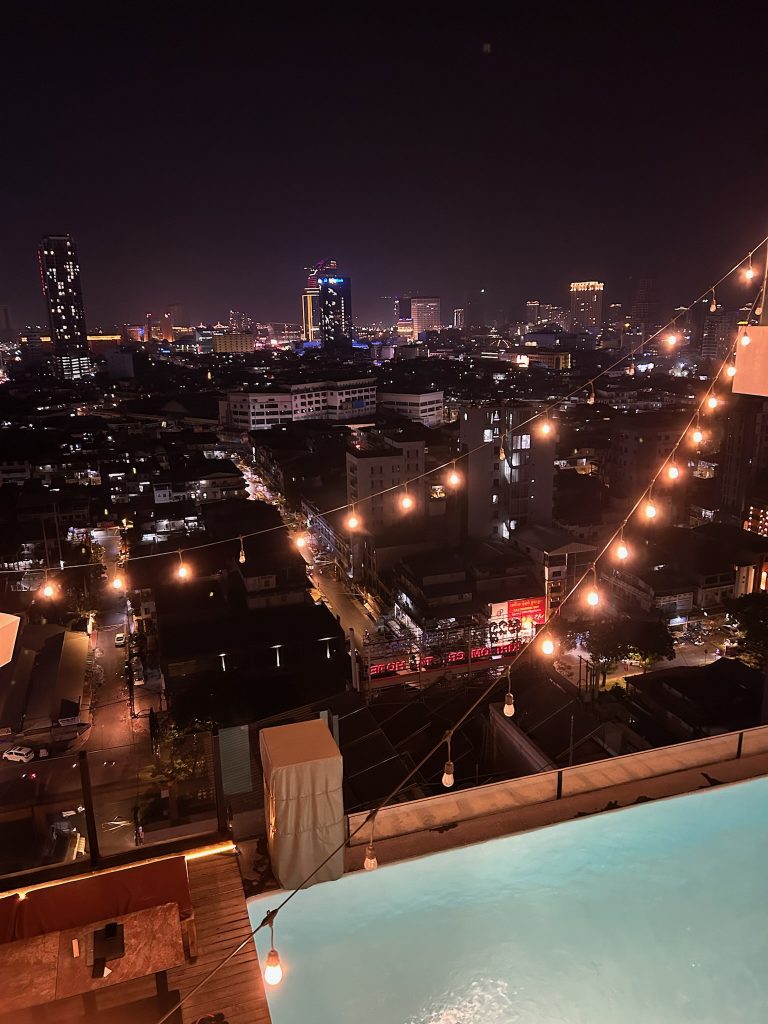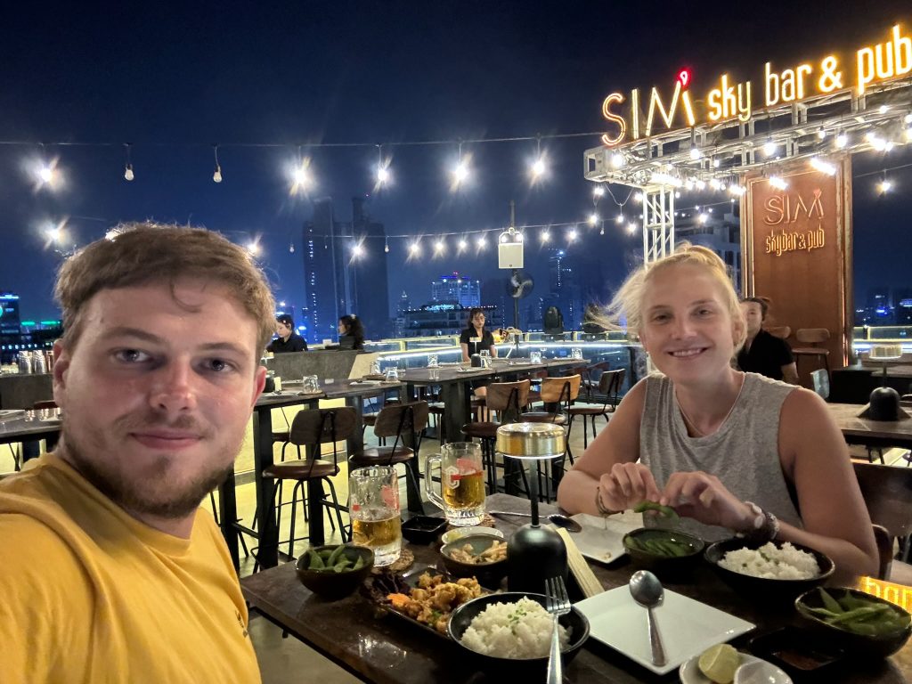 Nachdem wir eincheckten, entschieden wir uns das Buffet auf unserer Rooftop Bar mit gutem Preis-Leistungs-Verhältnis zu nutzen. Für 12$ p.P. Konnten wir uns so viele Gerichte bestellen wie wir wollten und hatten bis 19 Uhr Freibier. Klingt gut aber war im Endeffekt leider nicht so geil. Es gab wieder nur zerhacktes, hart frittiertes Fleisch und wenige schmackhafte Beilagen. Naja aber wir waren zumindest satt hinterher und hatten eine geile Aussicht auf die Skyline.