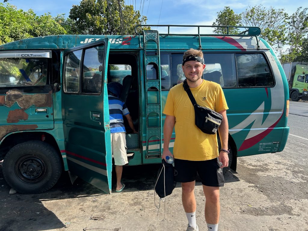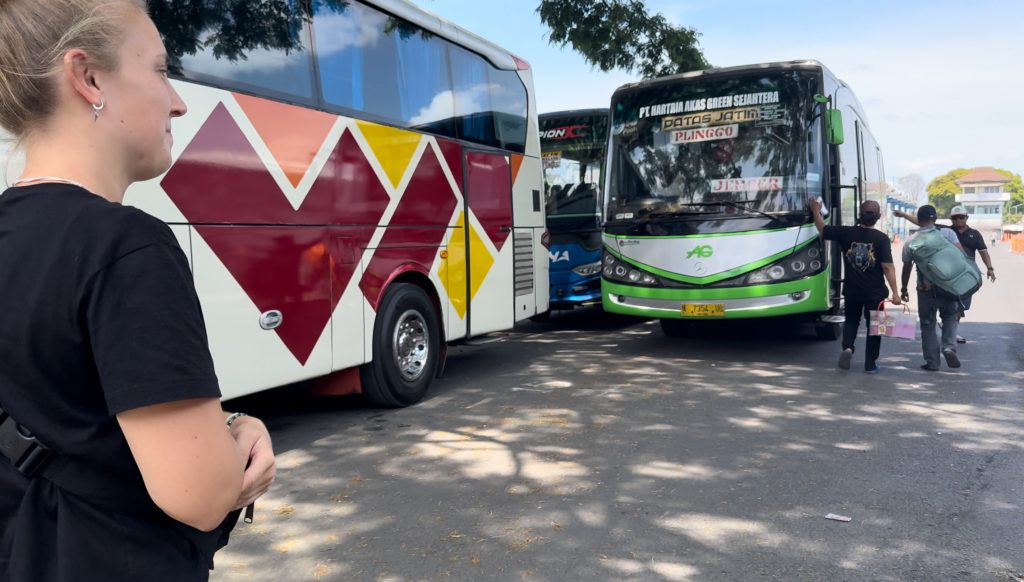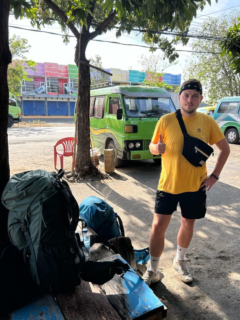 Als wir gegen 14 Uhr am Busbahnhof in Probolinggo ankamen, wo wir in den nächsten Bus umsteigen sollten, wurden wir direkt zu einem Touristenbüro gebracht. Ein Mann erklärte uns ein wenig, was wir am Bromo machen können und gab uns die Wahl, ob wir den lokalen Transport/Van nehmen wollen, der losfährt, wenn genug Leute zusammen kommen (aktuell warteten angeblich zwei Leute, wo wir mindestens 3€ zahlen und die Fahrt zwei Stunden dauert) oder ob wir sofort mit einem Auto losfahren wollen, wo die Fahrt eine Stunde dauert und 17,50€ insgesamt kostet. Da wir Zeit hatten und die kostengünstigere Variante nehmen wollten, wollten wir auf den Bus warten. Darüber war der Mann nicht begeistert, aber meinte, dass wir im Wartebereich warten sollen. Kurze Zeit später kam er an und meinte, dass es keine Fahrgäste gibt und heute kein lokaler Transport fährt. Hä? Da ich in einem Blog von einem Abfahrtspunkt bei einem Touristenbüro um die Ecke gelesen hatte, wollten wir es dort nochmal versuchen und liefen hin. Dort standen ein paar Vans und wir wurden angesprochen, ob wir zum Bromo wollen. Hier das Gleiche Prinzip – er fährt, wenn genug Fahrgäste oder wir müssen den vollen Preis zahlen. Zumindest wartete hier schon eine andere Touristin. Nach einer kurzen Wartezeit entschied der Fahrer gegen 15:15 Uhr, dass es losgeht und wir zahlten 8€ p.P., haben also nur 1,50€ zusammen eingespart aber egal, am Ende ging’s auch ums Prinzip.