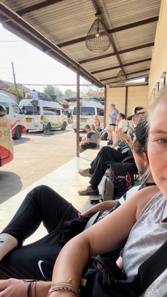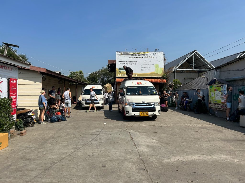 Um 12 Uhr fuhr dann der Minivan nach Chiang Mai. Unser Fahrer fuhr leider ziemlich ruppig durch die Berge mit den engen Kurven, sodass viele im Bus etwas Angst hatten und Marco und ich eine Reisetablette nehmen mussten, weil uns davon schlecht wurde. Zwei Stunden ging so die unangenehme Fahrt durch die Berge, man konnte die Landschaft gar nicht genießen und wir waren froh als wir eine kurze Pause machten. Ich glaube, der Fahrer wurde auch drauf angesprochen, denn am Ende fuhr er zum Glück etwas gemäßigter. Wir waren froh als wir endlich gegen 15:30 Uhr in Chiang Mai am Busbahnhof ankamen.
