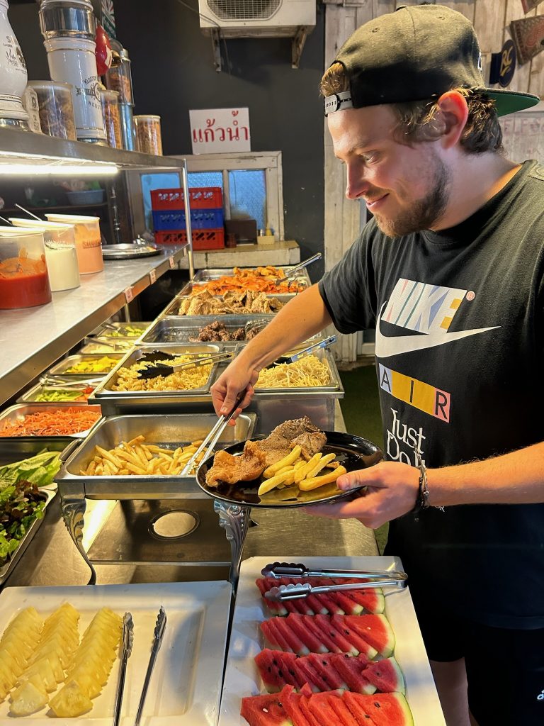 Wir bestellten uns ein Grab zu unserem Hotel, das ein bisschen im Randbereich, nördlich der Innenstadt liegt, checkten ein und chillten noch auf dem Zimmer, irgendwie waren wir etwas kaputt. Abends liefen wir nochmal los durch die Straßen. Der Markt hatte leider schon zu und irgendwie war es schwierig in der Gegend ein Lokal zu finden. Am Ende finden wir ein Restaurant mit Steak Buffet und da wir nur gefrühstückt hatten, konnten wir hier gut reinhauen.