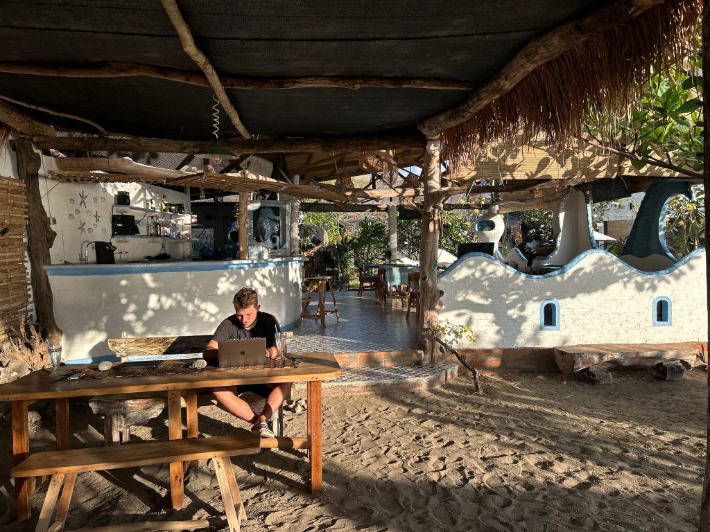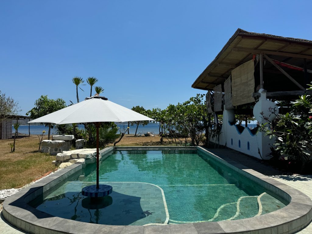 Unsere neue Unterkunft war eine kleine Anlage direkt am Meer, super schön und süß eingerichtet, worauf wir uns schon gefreut hatten – hier können wir uns mal wieder richtig wohlfühlen. Wir checkten für vier Nächte ein, bekamen einen Welcome-Drink und klärten uns einen Roller für die nächsten zwei Tage. Nachdem wir unser Zimmer bezogen hatten, bestellten wir uns einen Mittagssnack. Danach hüpften wir in den Pool und verbrachten den restlichen Tag draußen am Strand bis wir uns im eigenen Restaurant Abendessen bestellten.