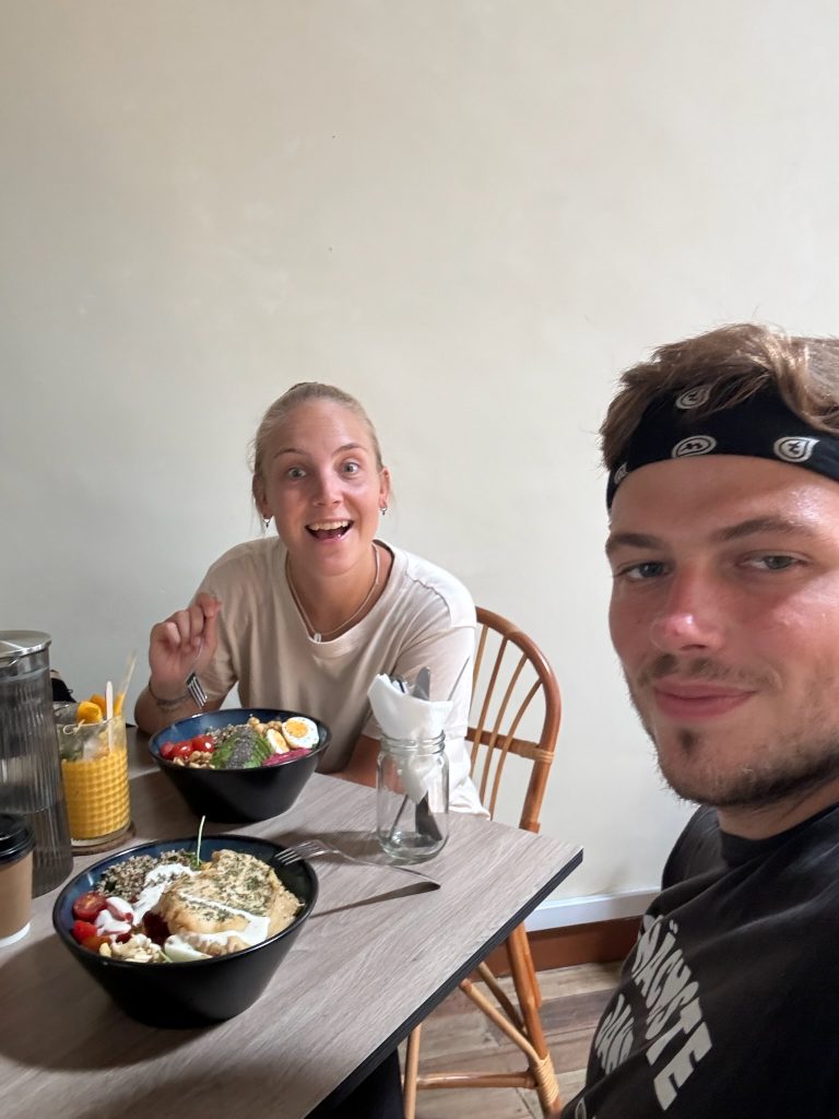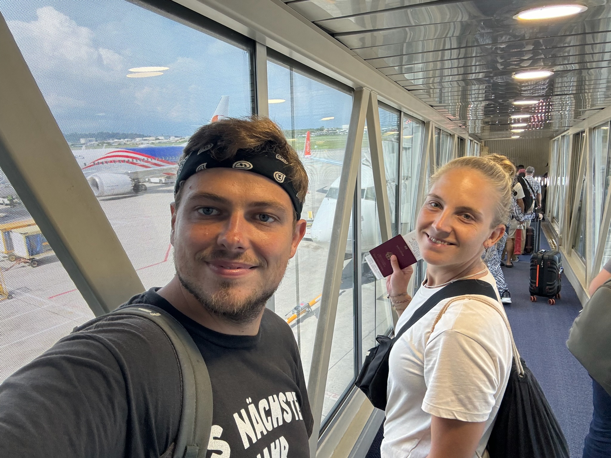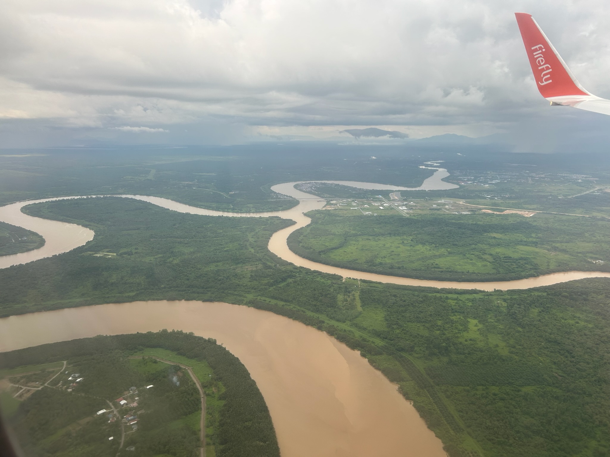 Heute ging unser Flieger (55€) um 15:45 Uhr nach Borneo! Vom Internationalen Flughafen Penang, der auf dieser Insel liegt. Also konnten wir ausschlafen, packten unsere Sachen und brachten den Roller zurück. Das war unsere letzte Rollerfahrt auf dieser Reise… Wir wollten gegenüber bei Pitaya (malayisch für Drachenfrucht) frühstücken, aber sie haben nicht zur angegebenen Zeit geöffnet. Also mussten wir doch erst zurück ins Hotel zuerst auschecken und mit den Rucksäcken nochmal wiederkommen. Somit hatten wir dort eine Stunde Zeit und konnten nochmal eine leckere Bowl essen. Auf 13:15 Uhr bestellten wir uns ein Grab zum Flughafen, die Fahrt dauerte ca. 30 Minuten. Wir konnten direkt einchecken und unser Gepäck abgeben. Danach setzten wir uns auf einen Kaffee noch zu Starbucks. Da wir einen Inlandsflug hatten, war auch bei der Sicherheitskontrolle keine Schlange.