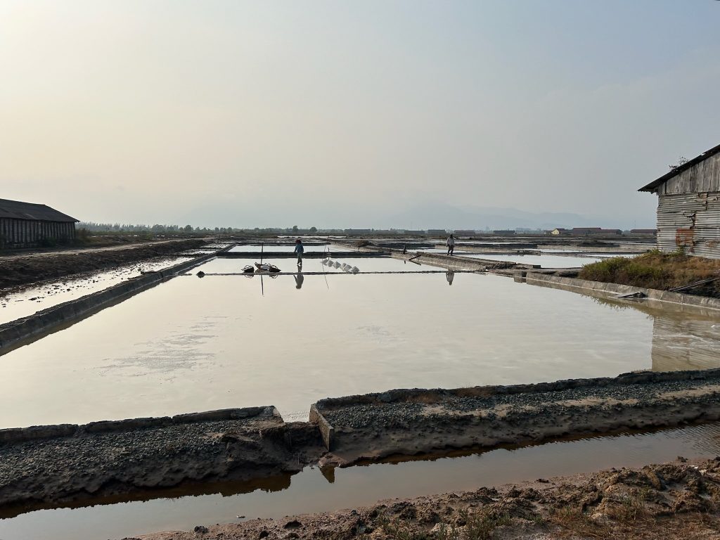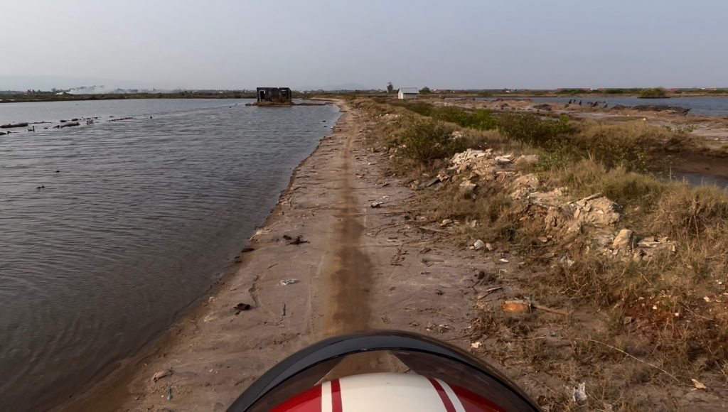 Von hier ging es auf eine abenteuerliche Fahrt auf teilweise schmalen Pfaden durch die Felder für Salzgewinnung durch. Aber Marco hat mit seiner Übung mittlerweile die Fahrt gut gemeistert.