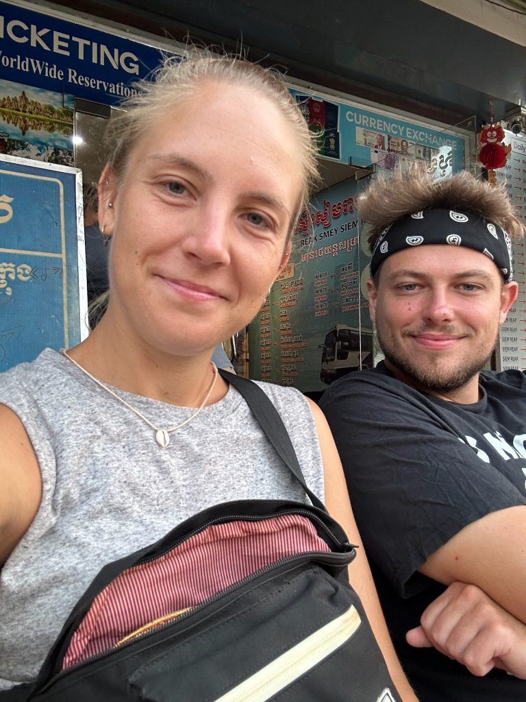 Heute hieß es wieder früh aufstehen, denn wir sollten ab 6:30 Uhr für unseren Bus abgeholt werden. Nach dem packen gaben wir unseren Schlüssel bei Mr. Veng ab und warteten. Wir wurden tatsächlich mal mit einem Tuk Tuk abgeholt und in die Stadt gebracht. Um 7 Uhr ging hier der Minibus nach Kratie. Wir sind noch ca. 30 Minuten durch die Stadt gekurvt, um einheimische Fahrgäste einzuladen. Irgendwie kriegen sie die Busse immer voll.