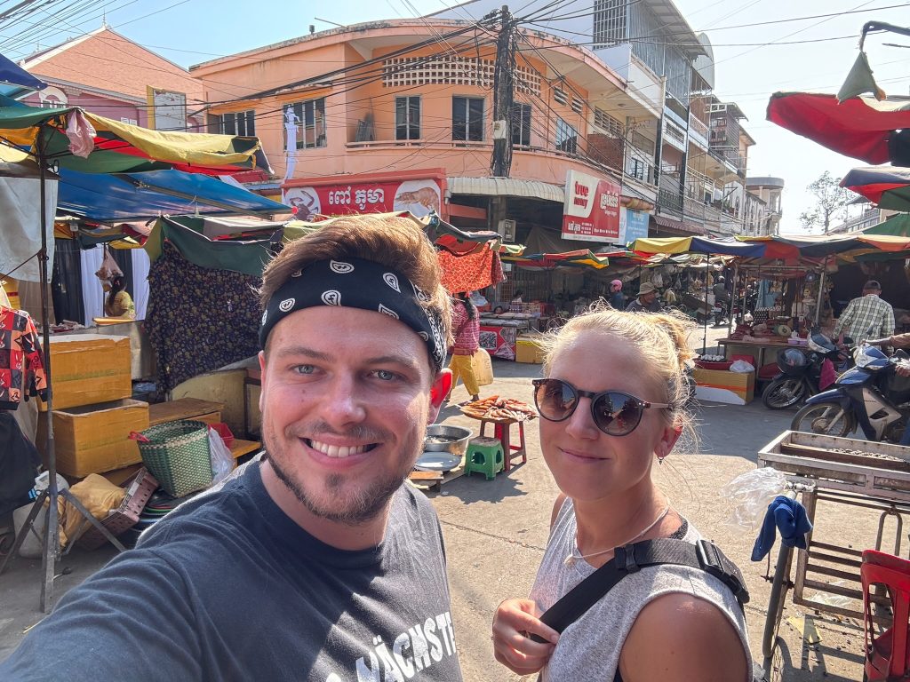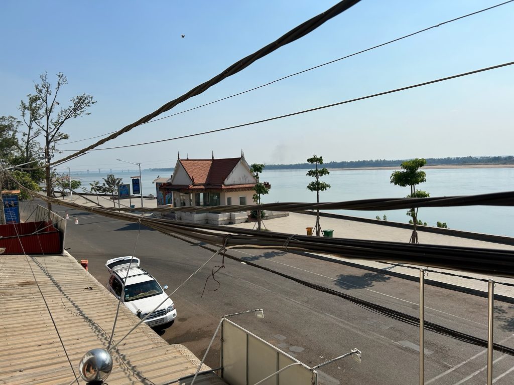 Nach 6-7 Stunden Fahrt wurden wir in Kratie vor unserem Hotel rausgelassen. Wir checkten für drei Nächte ein und waren gegen 14 Uhr auf unserem Zimmer. Wir liefen los in die Stadt, ein Restaurant für unser Mittagessen suchen. Irgendwie hatten alle geschlossen, sodass wir in das teure Bootsrestaurant am Ufer des Mekongs gehen mussten. Danach gingen wir zurück ins Zimmer. Ich hatte heftige Kopfschmerzen und legte mich früh schlafen. Kratie ist nicht groß. Bis auf die Delfine im Mekong, warum wir hier sind, gibt es eigentlich nichts zu sehen. Bei Booking.com gab es hier sogar kaum Unterkünfte. Hier hatten wir die günstigste Unterkunft bisher seit Thailand mit 7€ die Nacht für das Zimmer, es war allerdings auch ein sehr einfaches Zimmer. Es war leider direkt neben einer Schule wo es von morgens bis abends 17 Uhr laut war mit Kindergeschrei und Singsang. Außerdem gab es über den Mittag für ein paar Stunden, angeblich in dem ganzen Ort, kein Wasser.