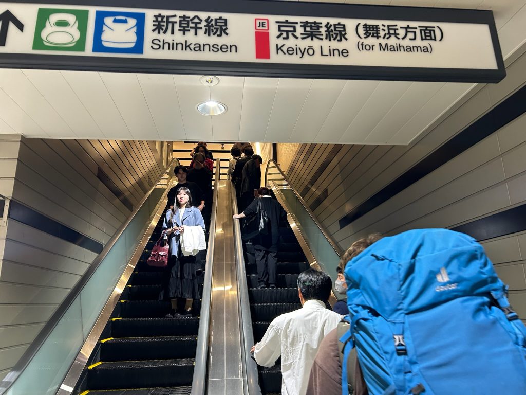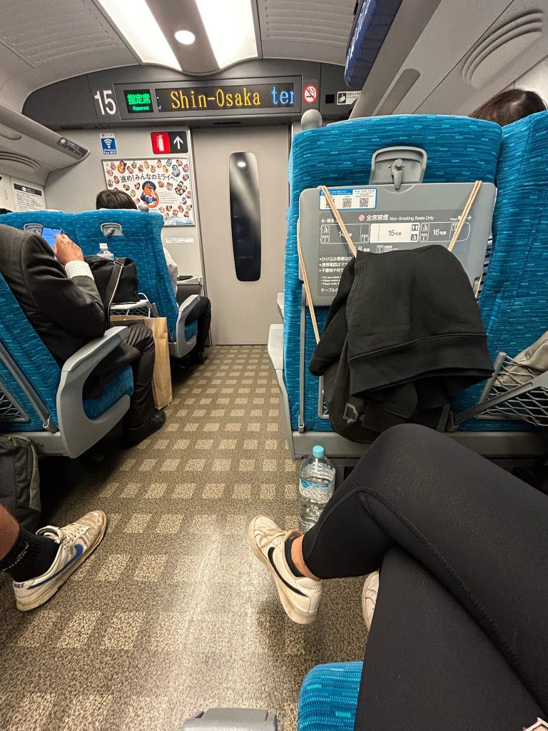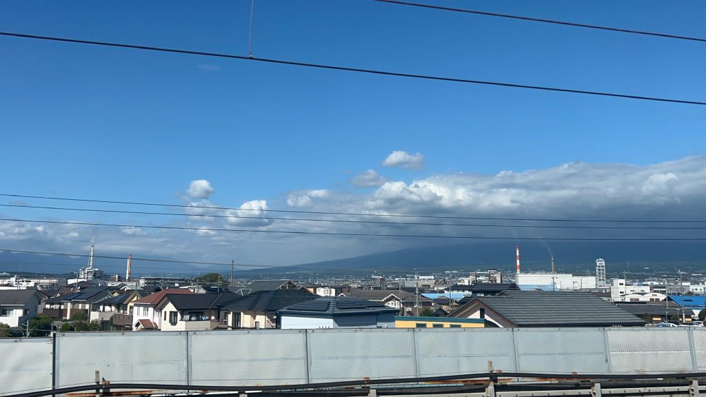 Nachdem wir uns fertig gemacht und Sachen gepackt haben, hat Marco beim Supermarkt Frühstück geholt. Um kurz vor 11 Uhr checkten wir aus und liefen zur Metro-Station. Wir fuhren ca. 20 Minuten zum Hauptbahnhof von Tokio. Dort irrten wir durch die unterirdischen Gänge von der Metrostation bis zu den Bahnsteigen des Bahnhofs. Tokio oder insgesamt Japan hat nochmal ein anderes Level, was die Größe der Untergrundstationen und ihre Verbindungsgänge angeht. Die Zugtickets hatten wir ja schon paar Tage vorher am Automaten gekauft. Um 12 Uhr fuhr unser Zug nach Kyoto. Die Fahrt für die 500 km dauerte mit dem Schnellzug nur ca. zwei Stunden. Den Fuji konnten wir aus dem Zug heraus leider nicht sehen, da er mal wieder – was für eine Überraschung – in den Wolken lag.