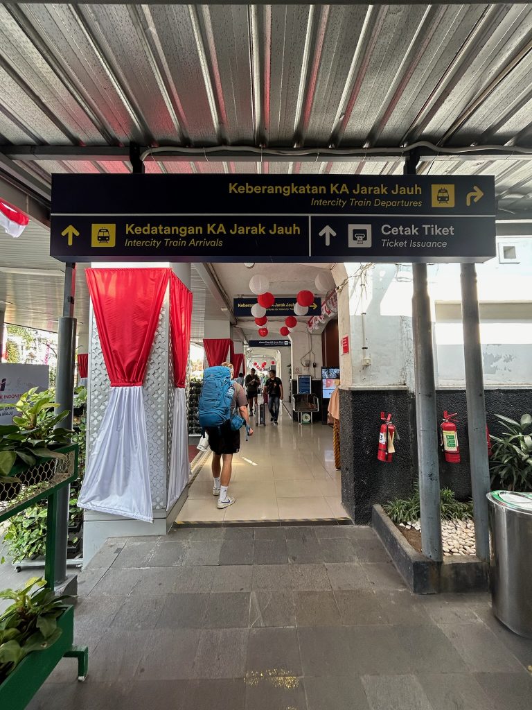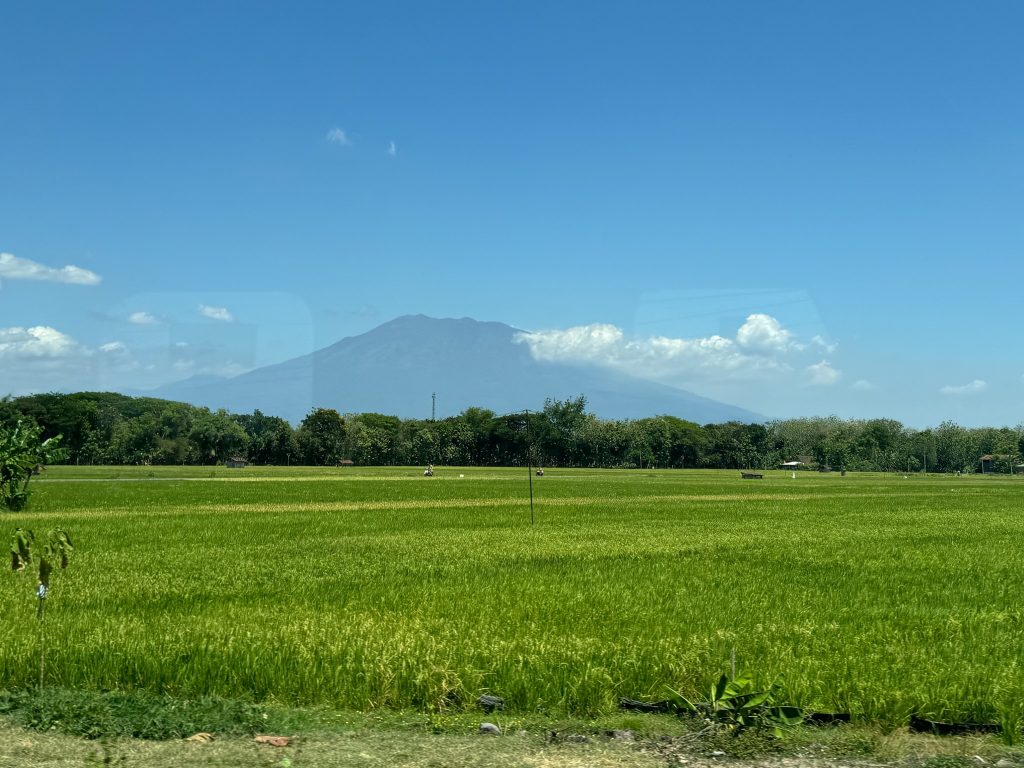 Unser Zug nach Malang fuhr um 9:31 Uhr. Wir checkten um 8:30 Uhr aus und fuhren mit einem Grab zum Bahnhof. Wir checkten am Schalter ein und gingen zum Gleis. Wir hatten wieder Tickets für die Exklusiv Class gekauft (22€ p.P.), weil die Fahrt nach Malang wieder 6-7 Stunden dauert. Wir fuhren durch die schöne, grüne Landschaft und an einigen Bergen/Vulkanen? vorbei.