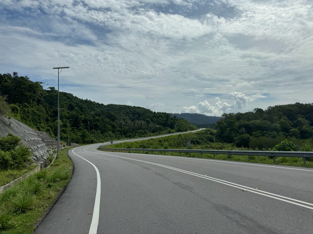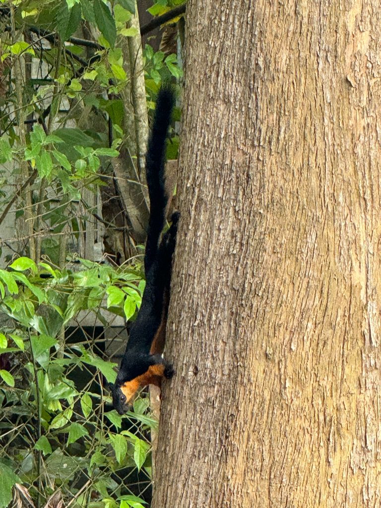 Wir wollten in der Stadt vorsichtshalber nochmal tanken, danach ging es weiter nach Norden die Straße um den Berg herum. Auf dem Weg sahen wir einen außergewöhnlichen Vogel und ein Rieseneichhörnchen. Im nordöstlichsten Ort machten wir eine Pause in einem Café für einen Mittagssnack. Danach ging es die Straße weiter an der Nordküste entlang, die wir schon kannten.