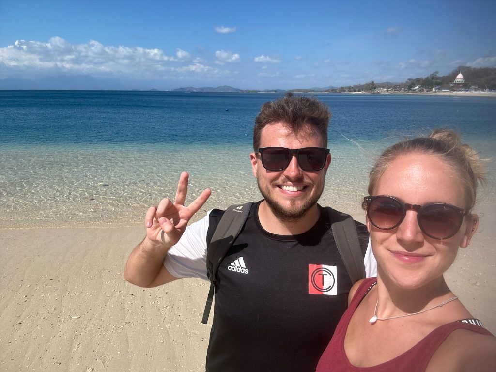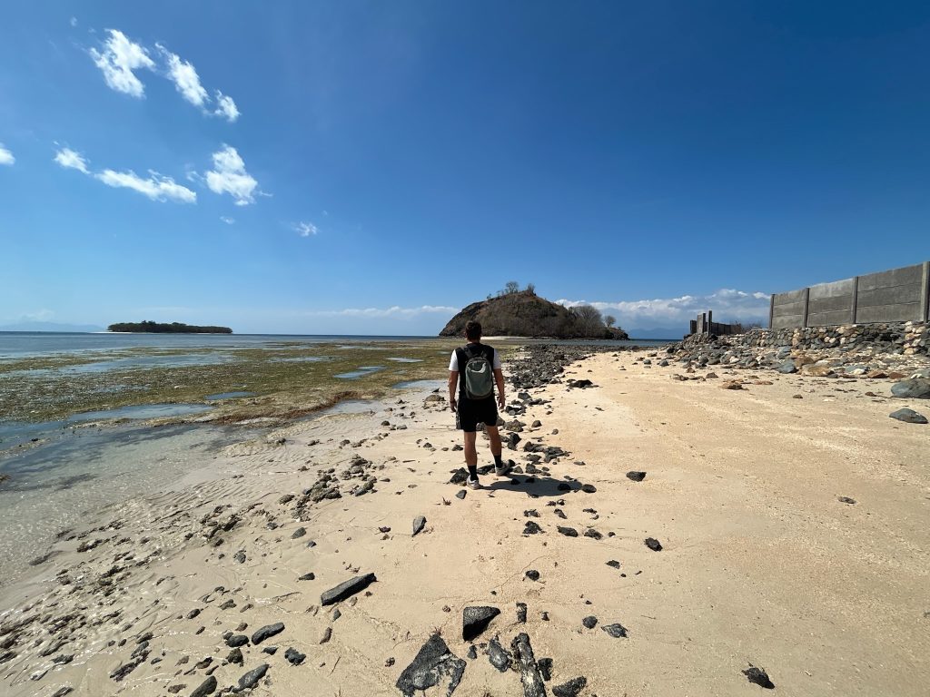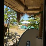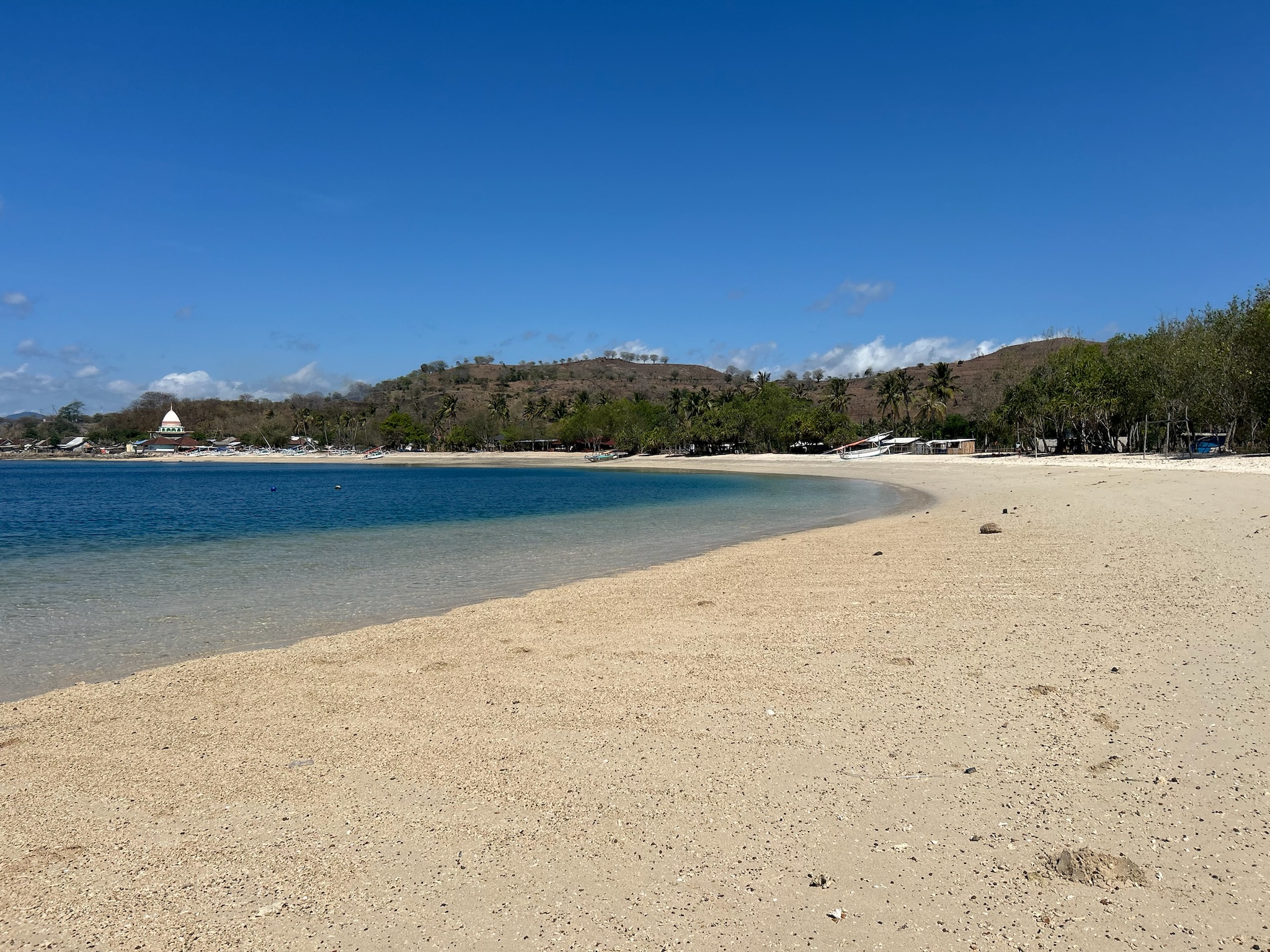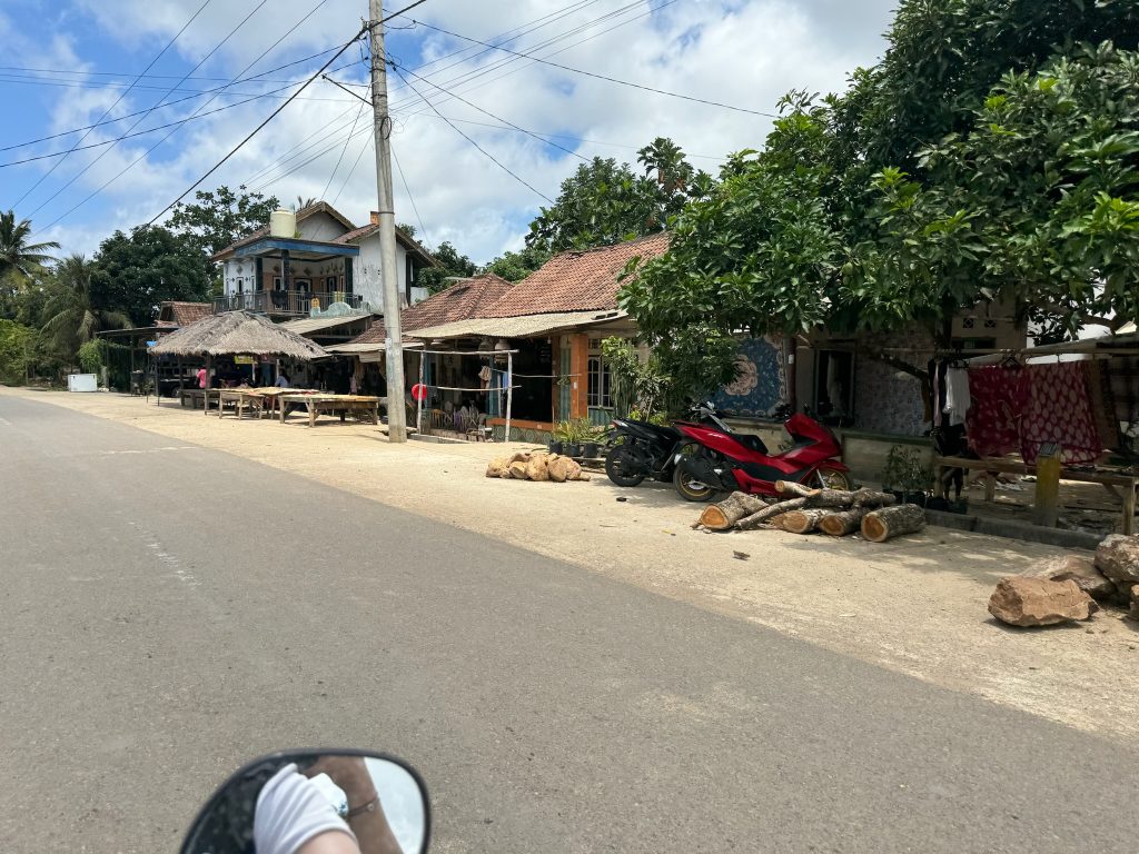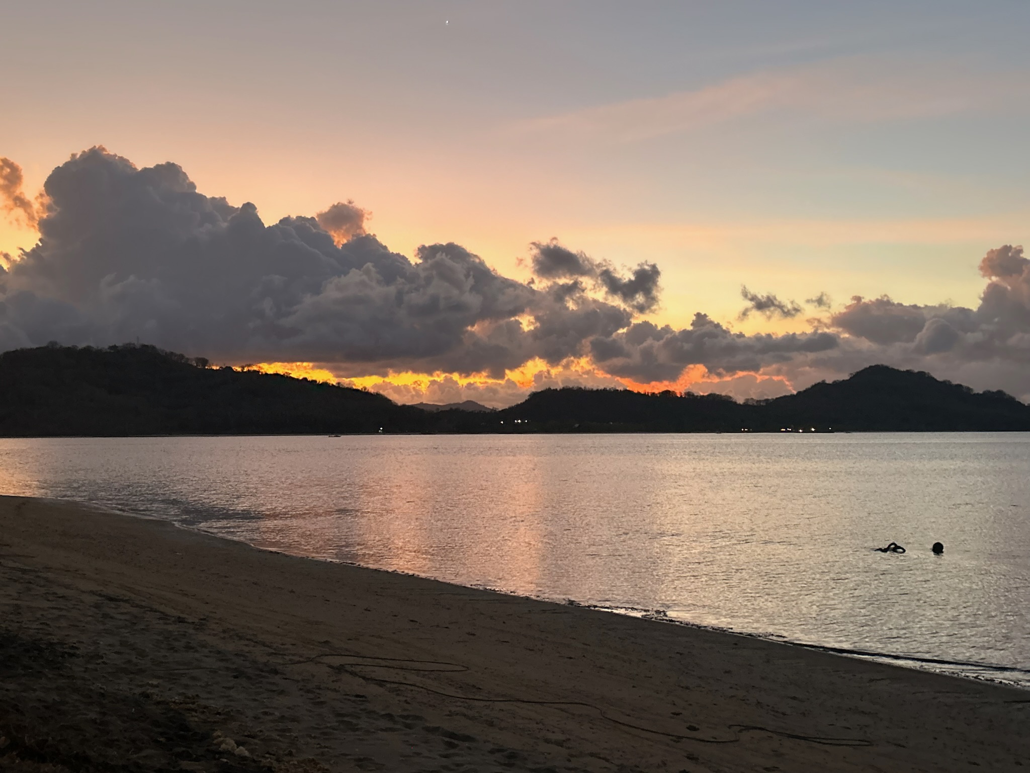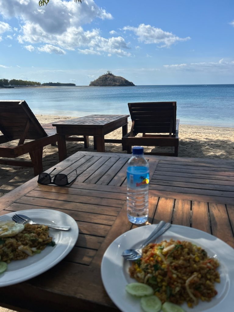 Wir fuhren noch ein Stück an unserer Unterkunft vorbei bis zu einem kleinen Landzipfel. Wir parkten das Motorrad und liefen am Strand entlang einmal um den Zipfel. Hier war ein Badestrand, an dem viele Einheimische abhingen. Wir entdeckten ein kleines Lokal am Strand, wo wir uns einen Snack bestellten. Danach machten wir uns auf den Rückweg und waren am späten Nachmittag zurück im Hotel. Wir sprangen in den Pool und chillten danach auf einer Liege am Strand bis zum Sonnenuntergang und zum Abendessen.