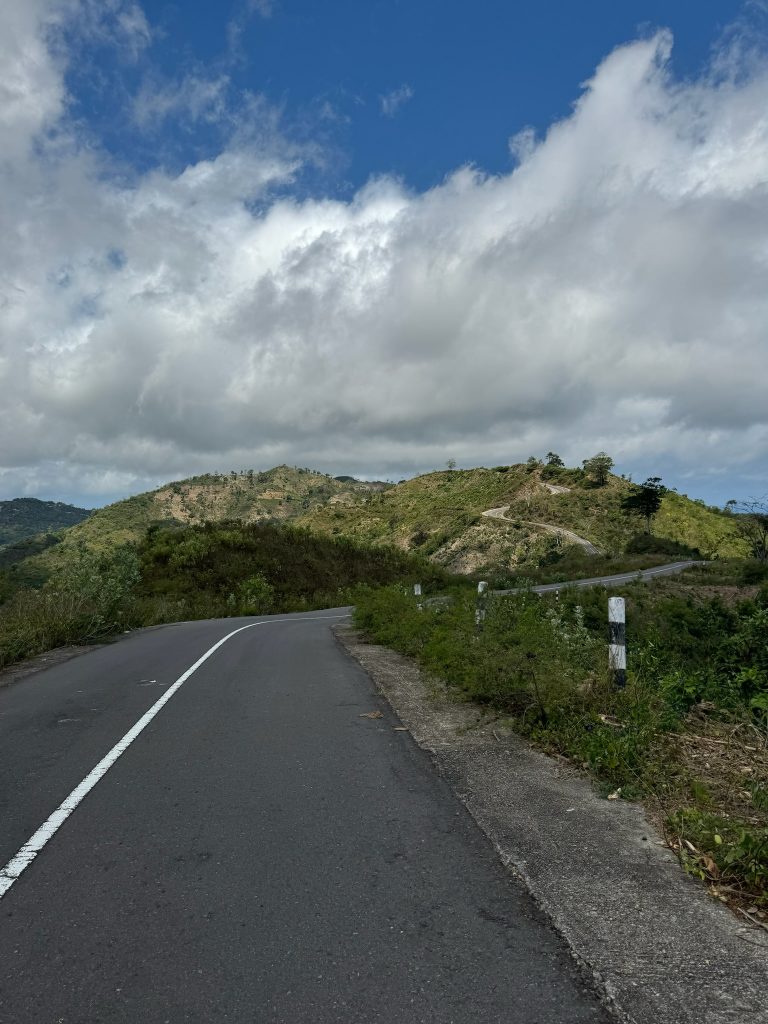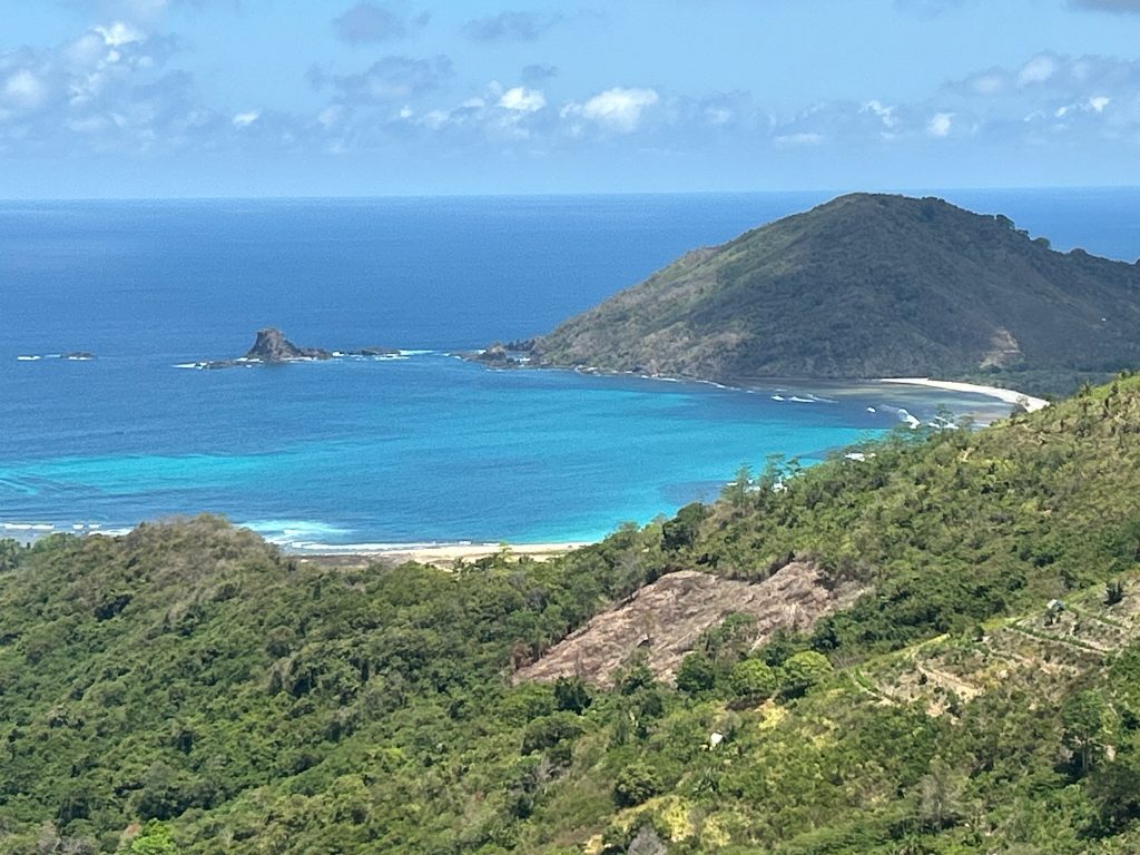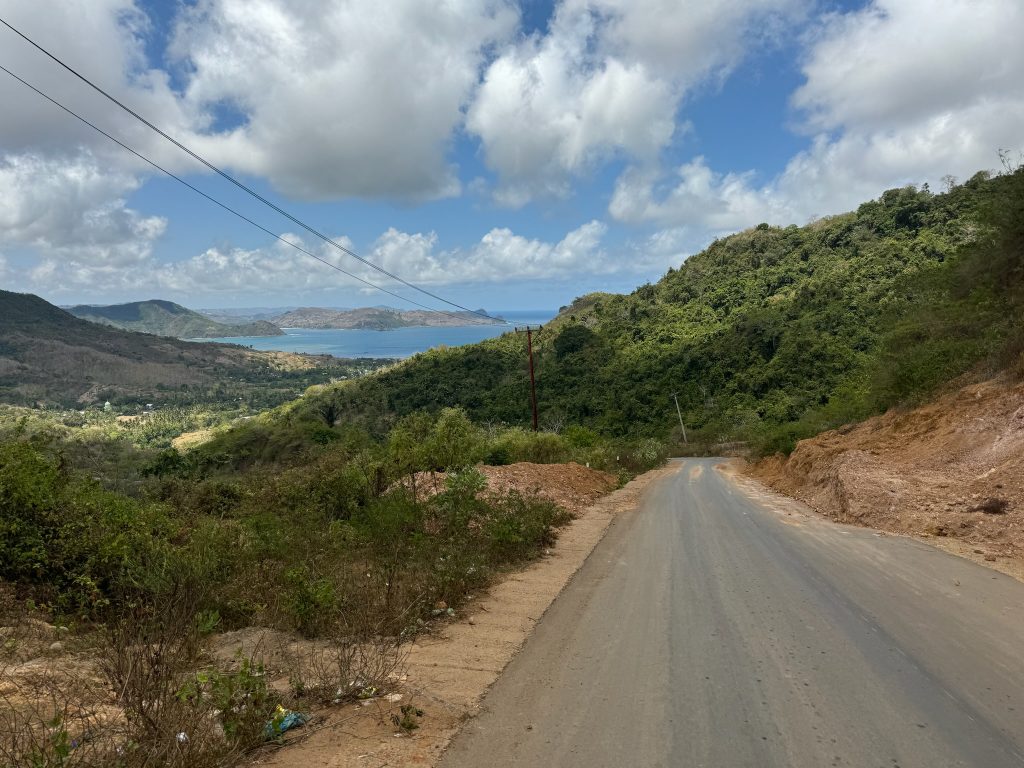 Um 9 Uhr setzten wir uns in das Hotel-Restaurant und bestellten unser Frühstück, welches wir auswählen konnten. Danach gingen wir im Meer schwimmen, morgens soll man hier Schildkröten sehen, aber wir waren wohl schon zu spät. Auch hier ist das Wasser sehr flach und abends Ebbe. Nachdem wir uns fertig gemacht hatten, fuhren wir los ca. 20 Minuten nach Süden an die Küste. Hier wollten wir eigentlich an den Strand einer Bucht, aber wir wurden aufgehalten, weil sie gesperrt war. Schade, also fuhren wir die Küstenstraße über die Berge weiter nach Osten und konnten nur von oben einen Blick in die riesige, schöne Bucht werfen. Später erfuhren wir, dass in der Bucht ein Hotel entsteht und daher die Zufahrt gesperrt ist.