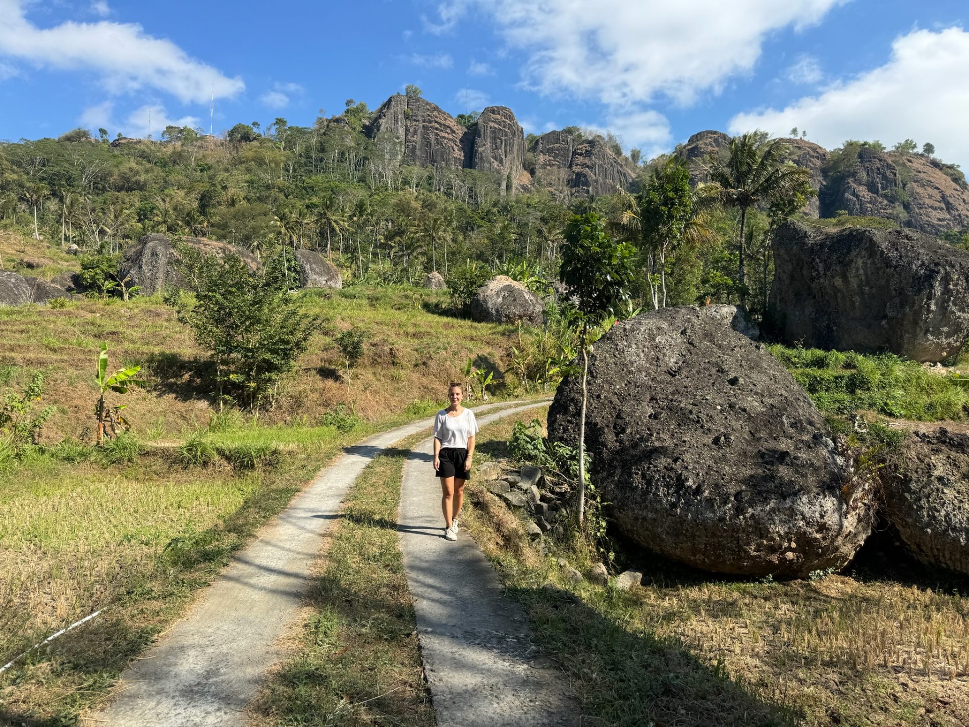 Wir fuhren weiter Richtung „Gunung Api Purba“ Geopark, ein Berg aus dunklen bizarren Felsen. Diese waren auch überall in der Landschaft verstreut. Wir fuhren um die Bergspitze herum, bis wir einen guten Blick auf sie hatten.