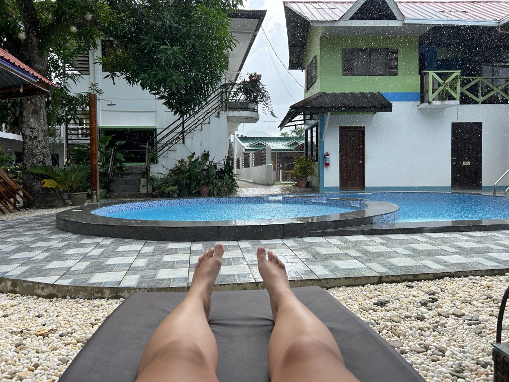 Heute ging’s mir leider nicht so gut, vielleicht war der kostenlose Rum von gestern Abend gepuncht? Also verbrachten wir den heutigen Tag in der Hotelanlage und legten uns nach dem Frühstück an den Pool. Es regnete immer mal wieder zwischendurch. Auch hatten wir während unseres Aufenthaltes hier immer mal wieder Stromausfall. Unser Hotel hatte aber einen Generator – ein Grund, warum wir immer hier gegessen haben, wegen Kühlschrank und so…Nach dem Abendessen buchten wir über unser Hotel einen Transport nach El Nido (9,50€ p.P.).